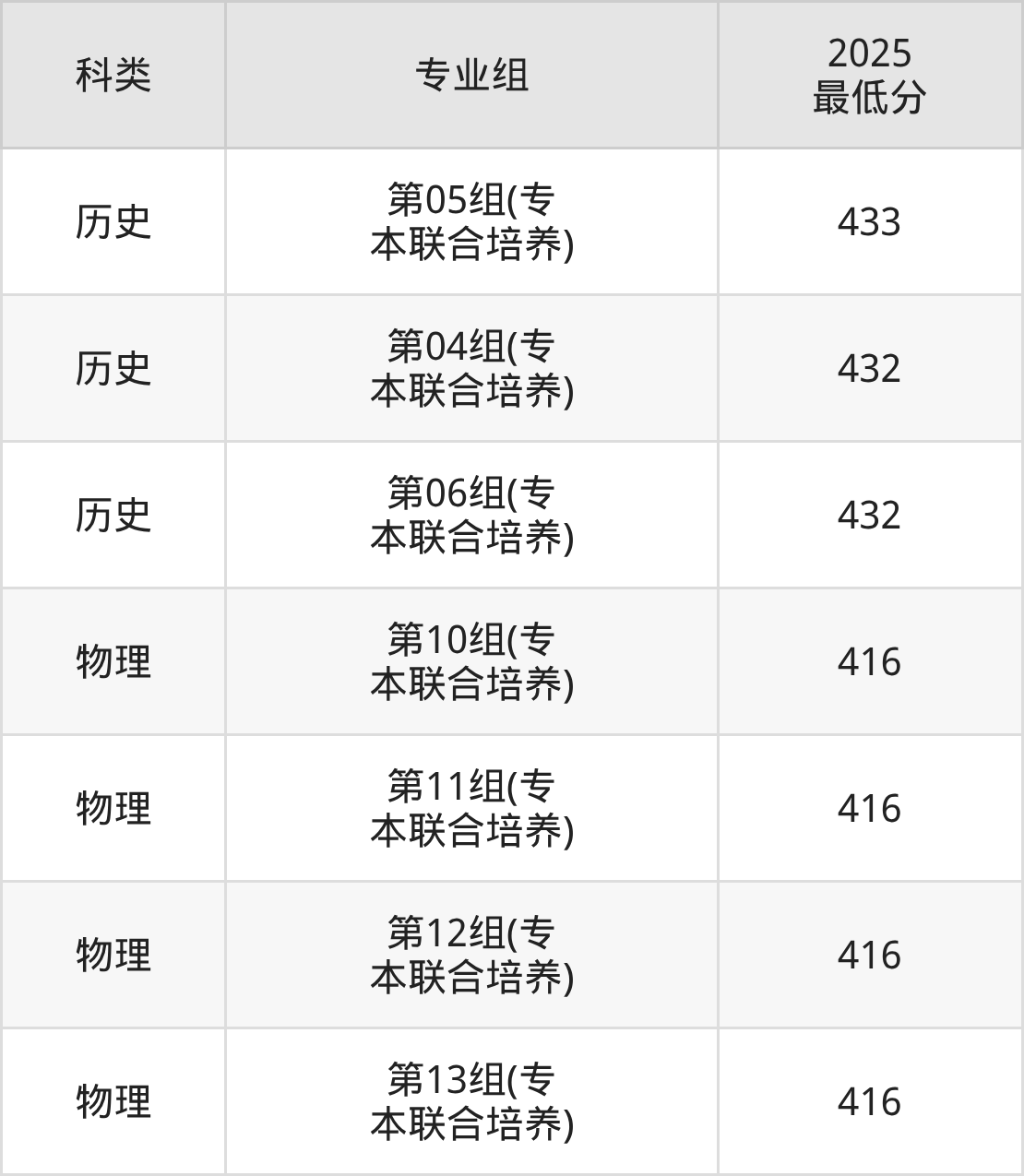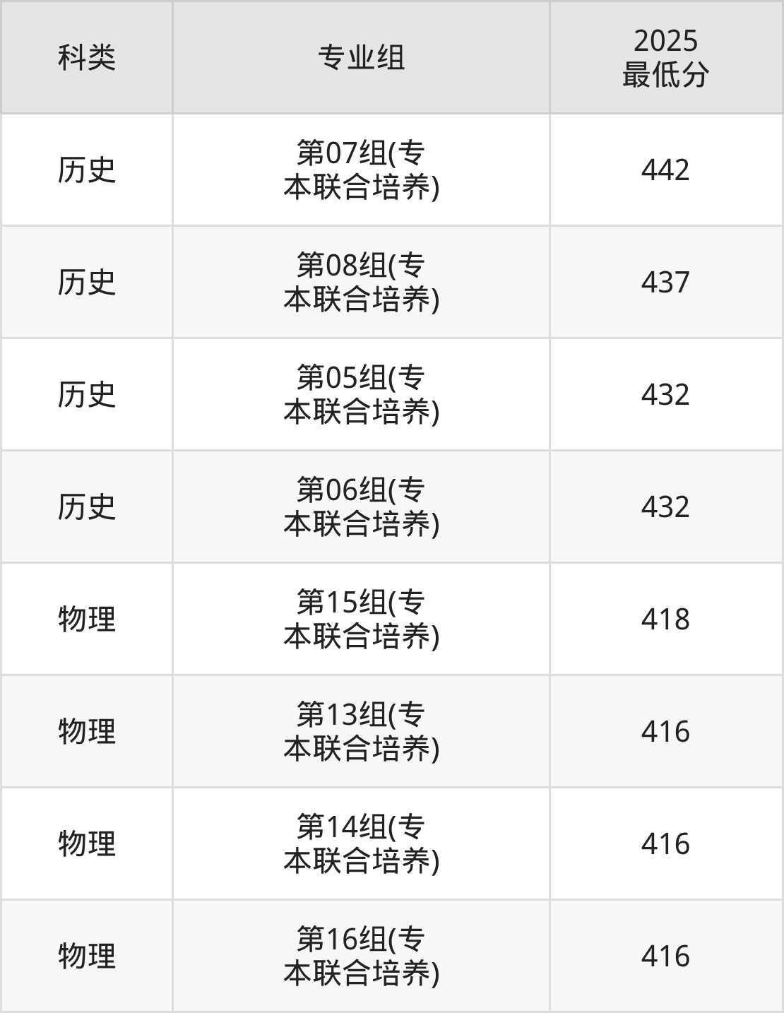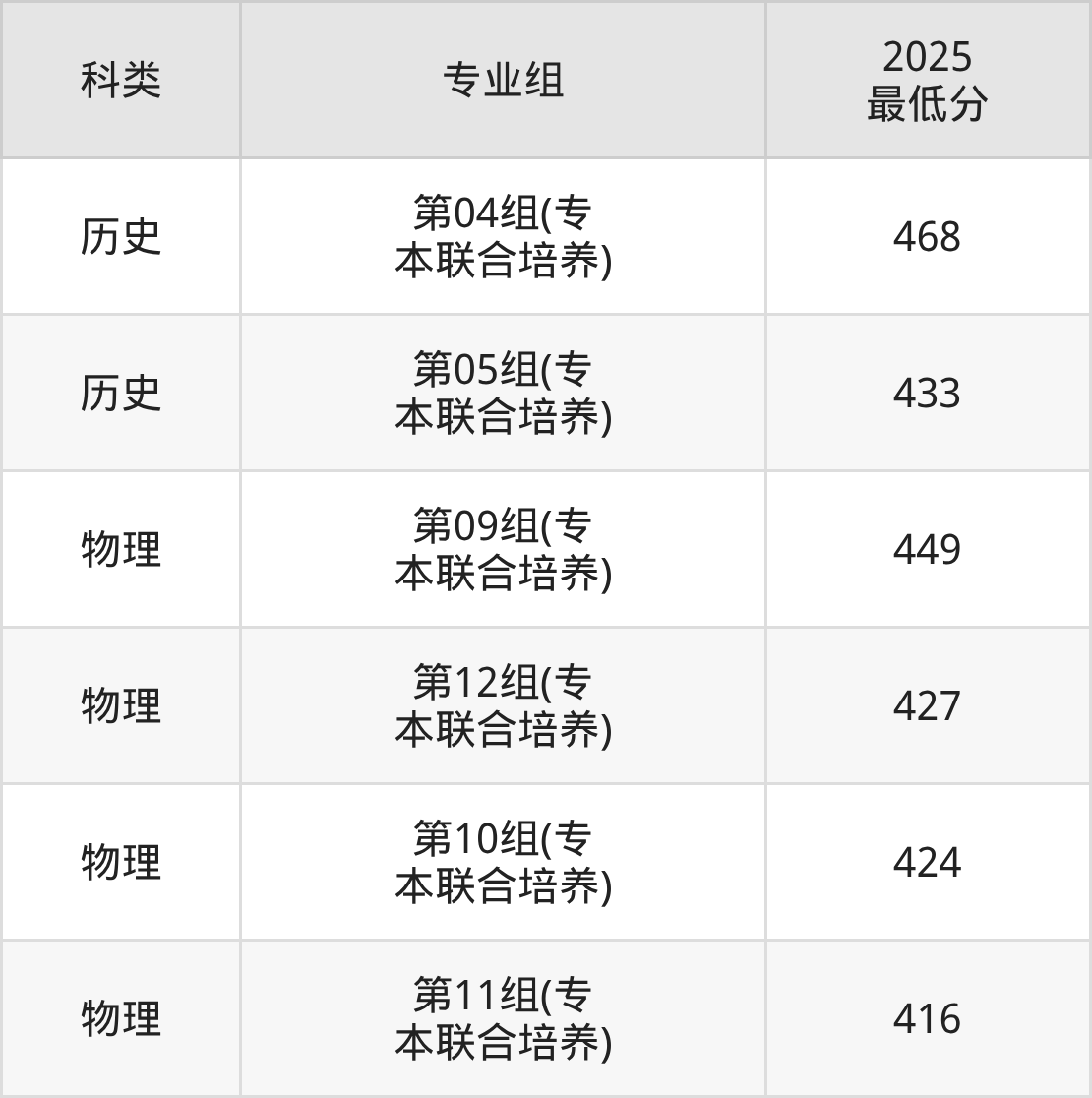 下面是各专业组最低分: