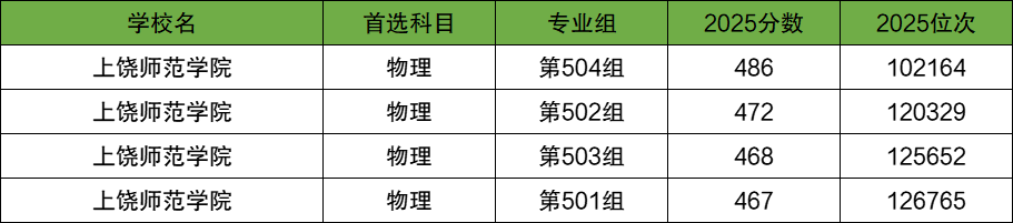 2025年上饶本科各大学专业组录取分数线(物理类):