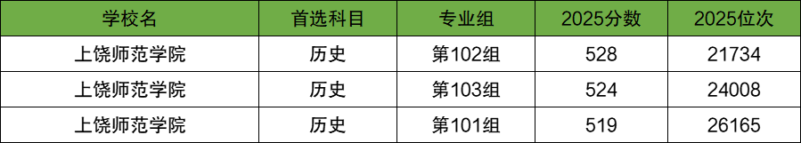 2025年上饶本科各大学专业组录取分数线(历史类):