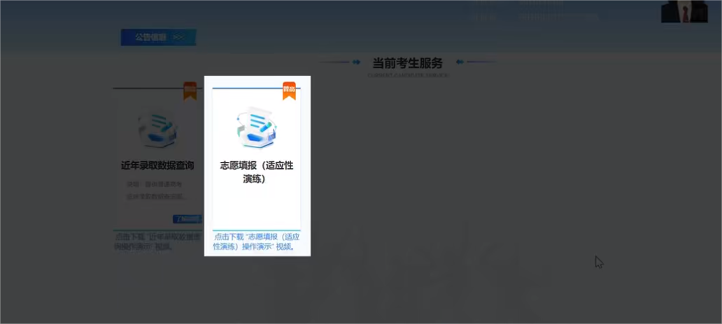 进入系统后点击“志愿填报”功能卡片,阅读考生须知了解操作流程和相关要求以后再进行下一步的操作。了解模拟志愿的各个板块,如计划查询和收藏、我的收藏、志愿填报等。