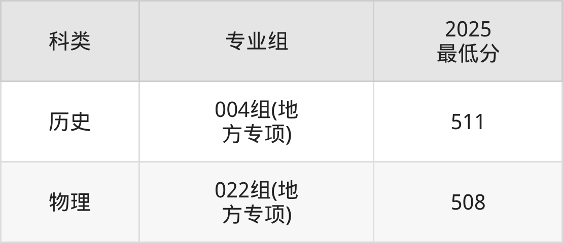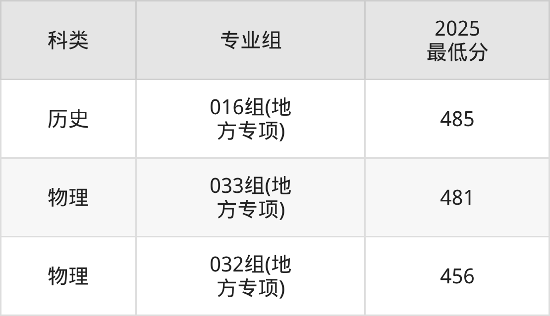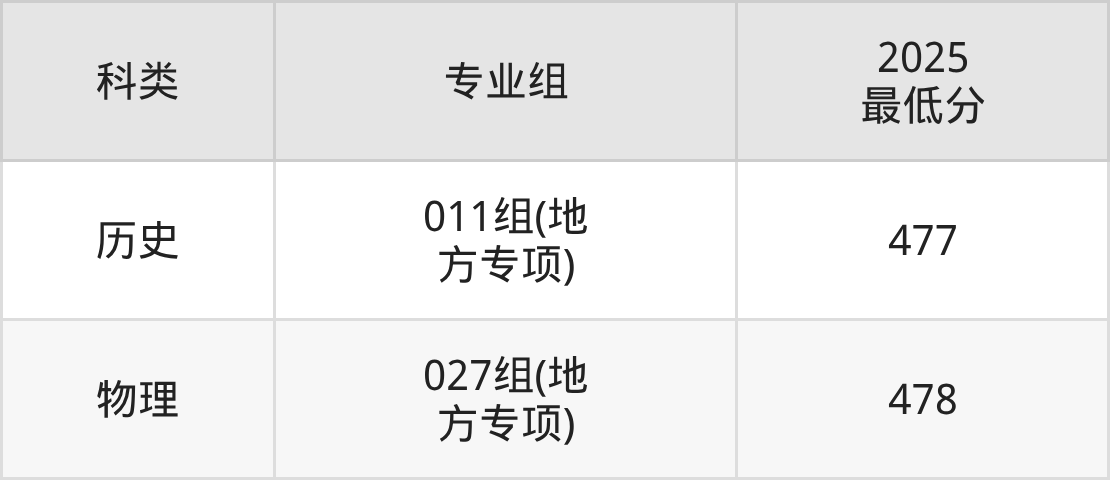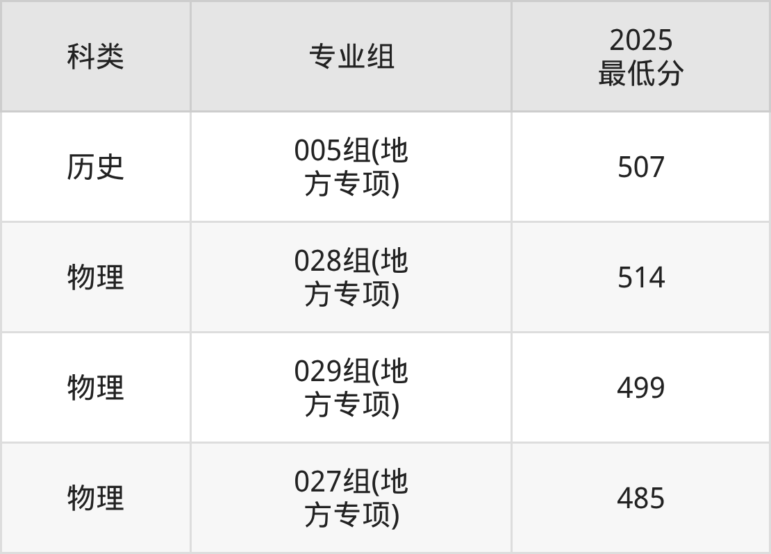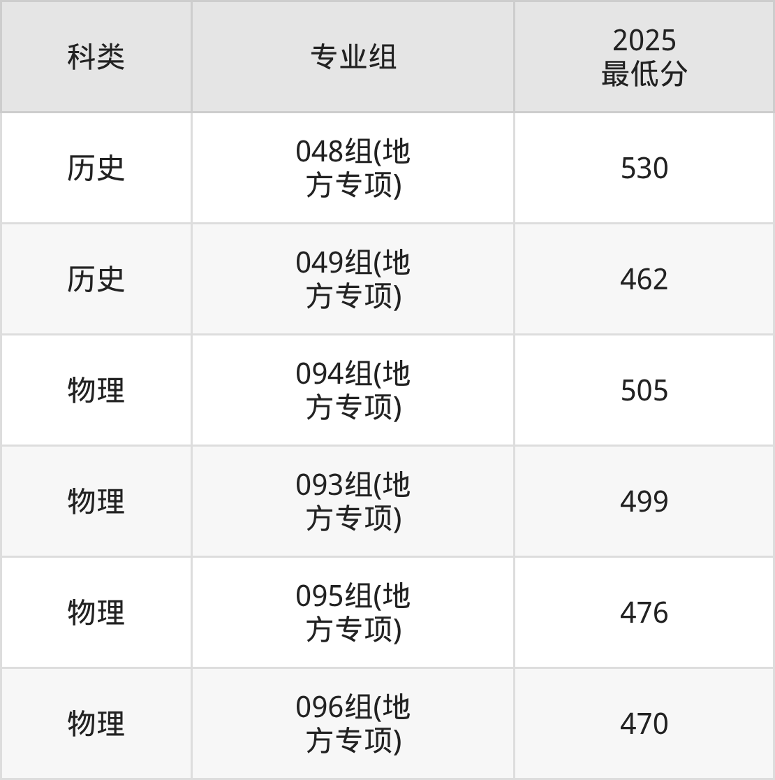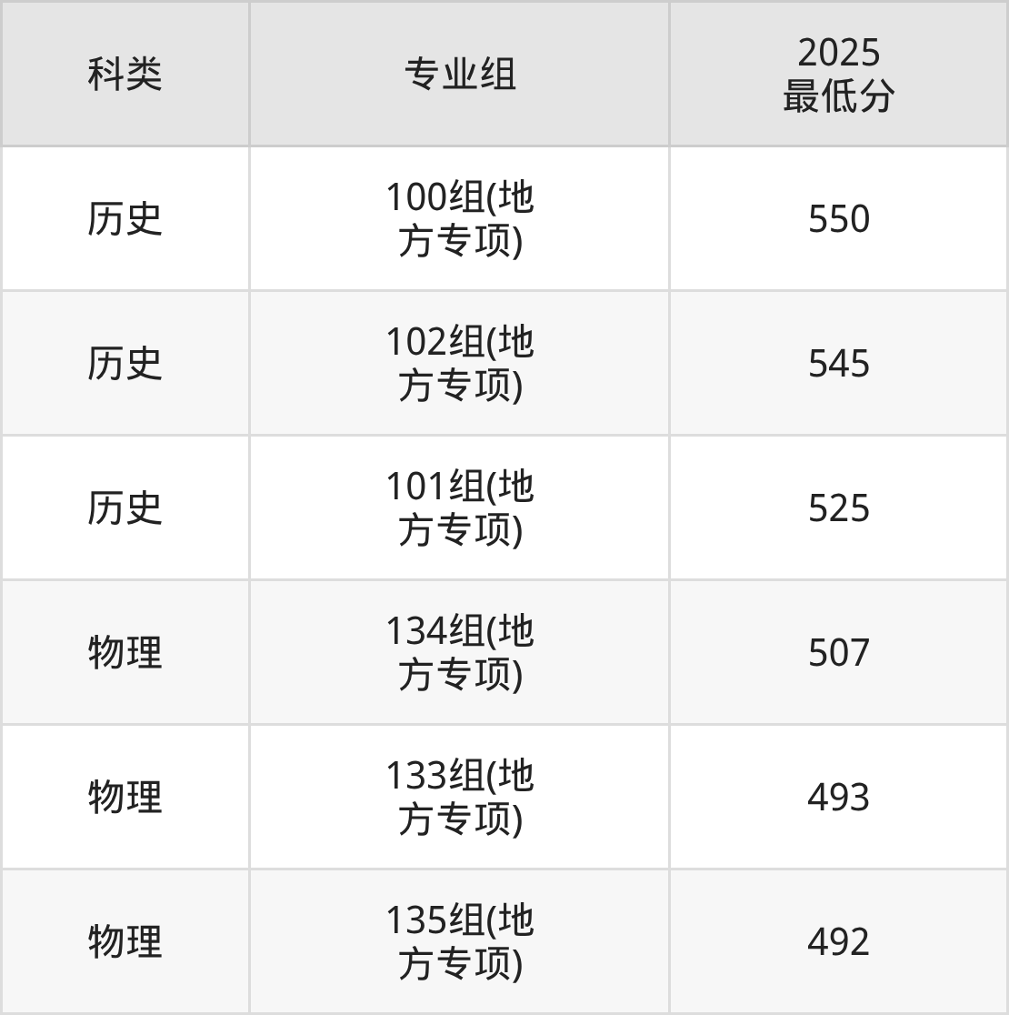 | 学校名 | 批次 | 科类 | 2025 最低分 | 2025 位次 |