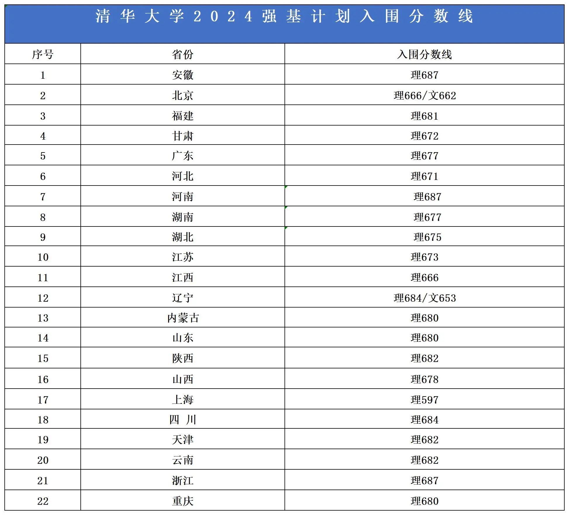 与2023年相比,清华2024年强基计划入围分有了一定增长,部分省份分数线如下:
