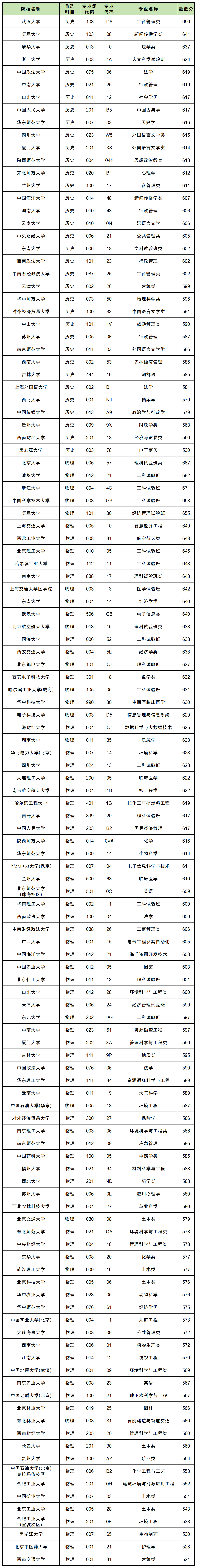 物理类:各校最低录取分数在521分-687分,最低分对应西南交通大学,最高分对应北京大学。