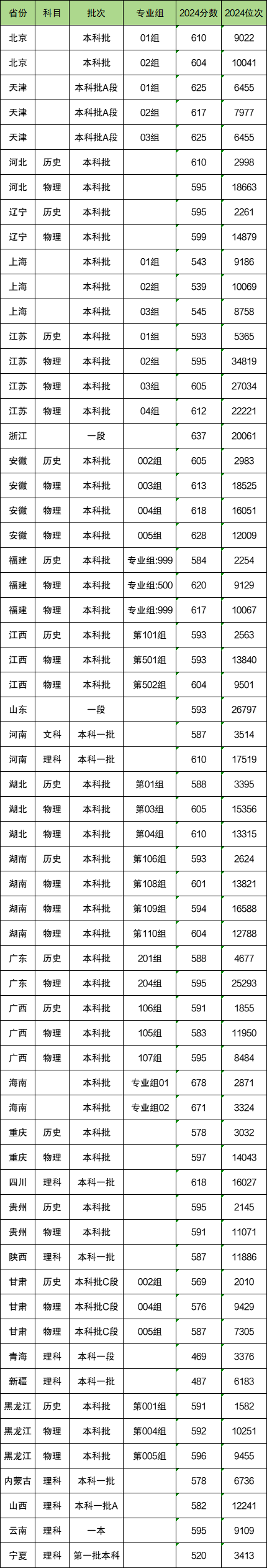 以下是东华大学2024年在全国各省最低录取分数一览表: