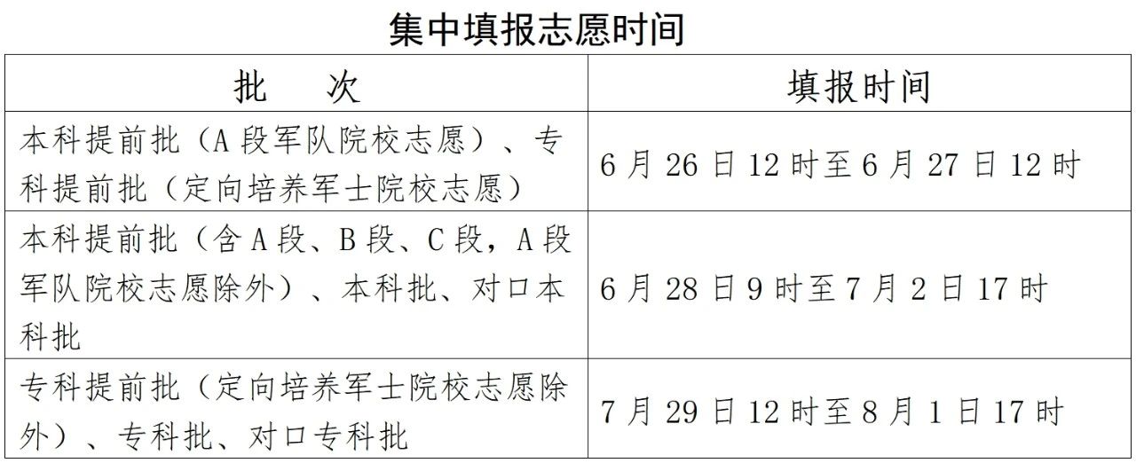 填报本科提前批(A段除军队院校外、B段、C段)、本科批、对口本科批志愿。