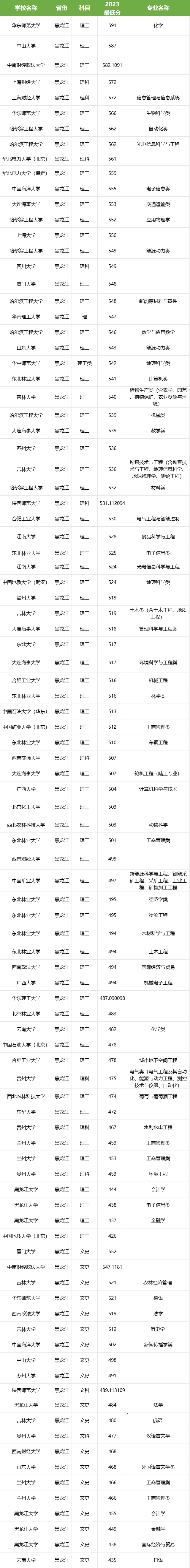 以上几所大学最低分对应专业为未公布、未公布、德语、法学、新闻传播学类,最低分数分别为552分、547.1分、521分、519分、502分。