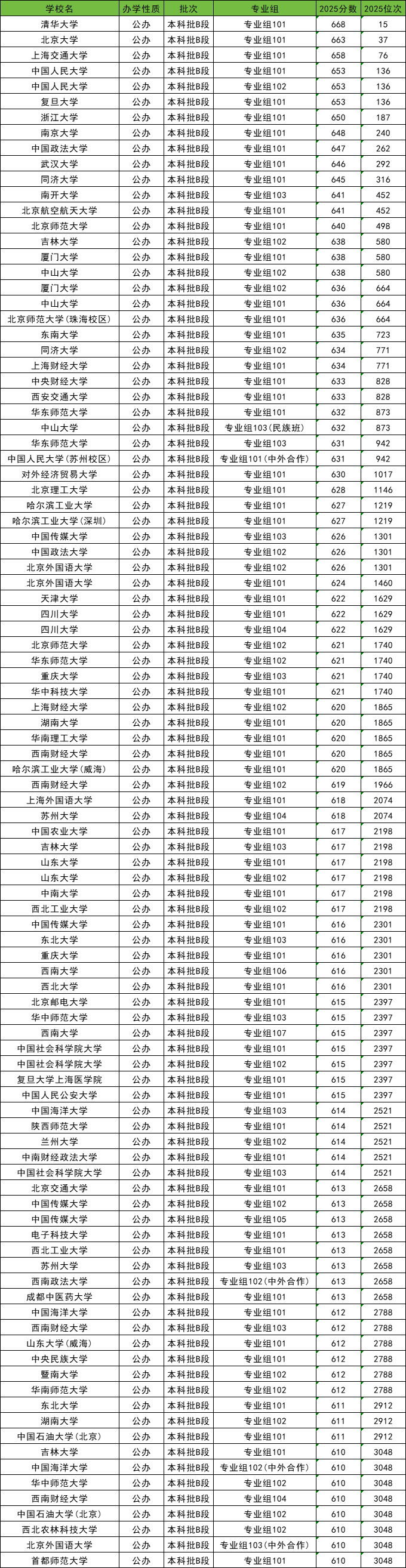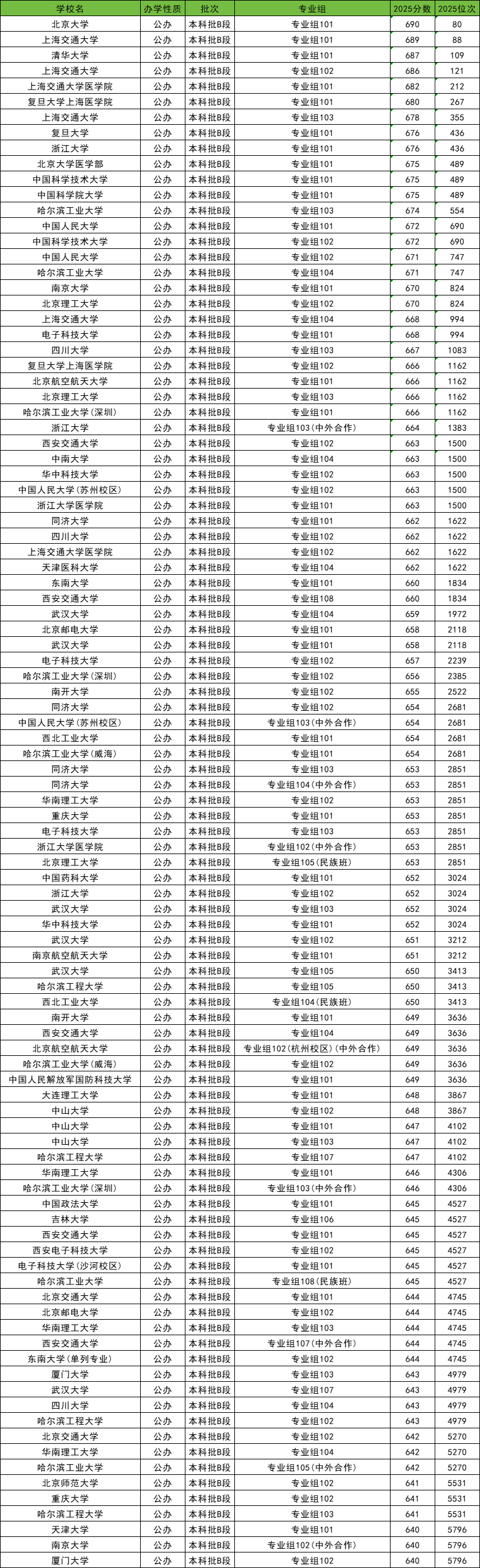 下面是2025年在四川省物理类录取分数线及位次排名前百强高校一览表(滑动查看):