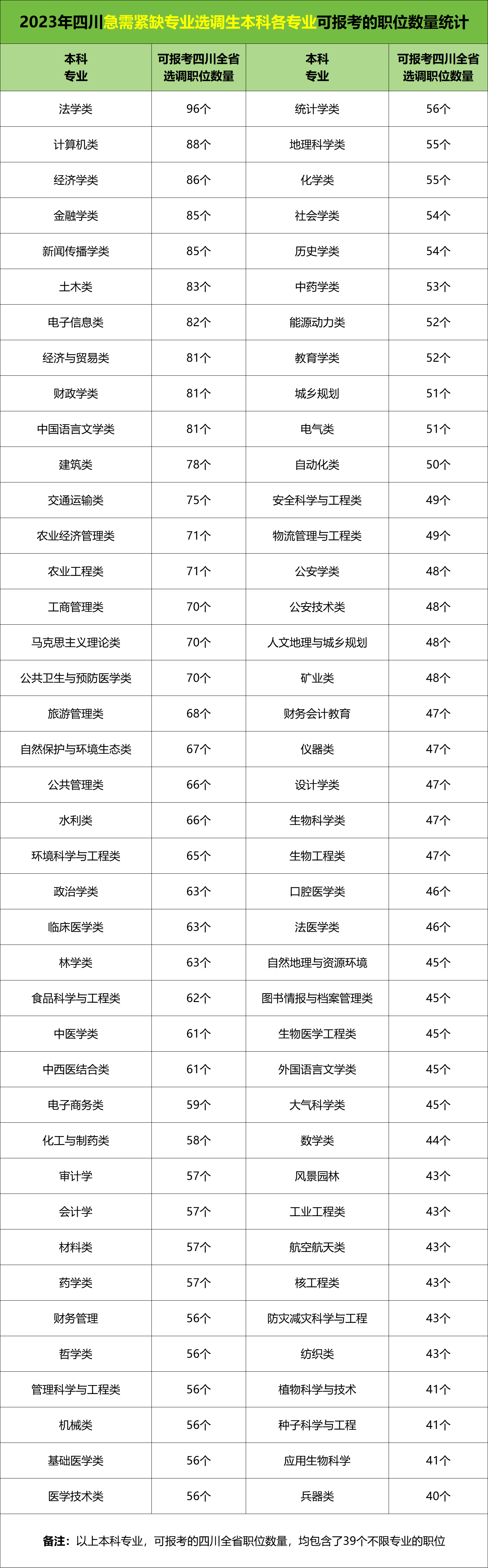 圆梦志愿为高考生整理了:四川省急需紧缺专业选调2023年可报考岗位数量最多的专业。名单如下↓