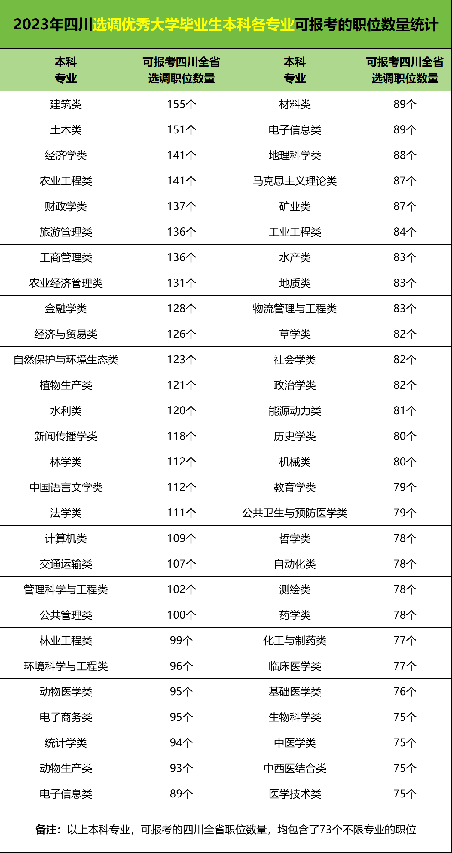 圆梦志愿为高考生整理了:四川省选调优秀大学毕业生2023年可报考岗位数量最多的专业。名单如下↓