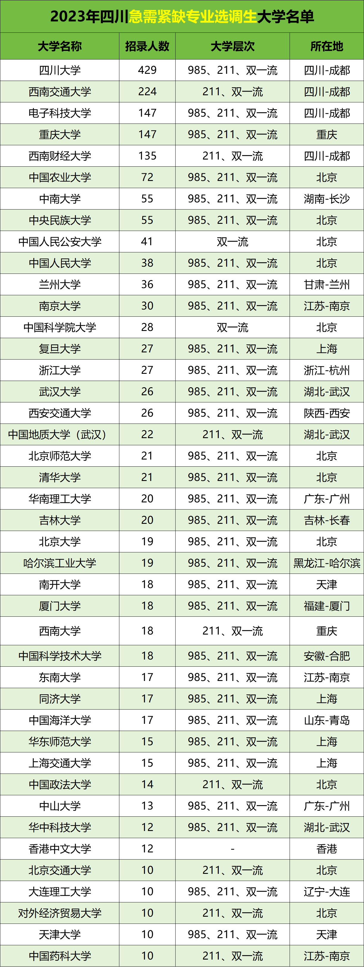 圆梦志愿为高考生整理了:四川省急需紧缺专业选调2023年招录人数在10人以上的大学。名单如下↓