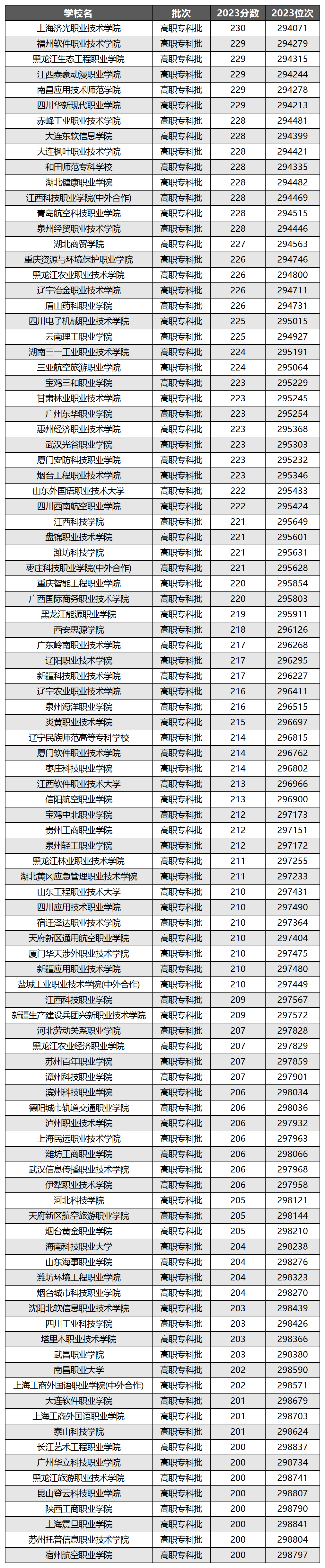 专科大学录取中,有8所大学的分数线在专科线上,学校是长江艺术工程职业学院、广州华立科技职业学院、黑龙江旅游职业技术学院、昆山登云科技职业学院、陕西工商职业学院、上海震旦职业学院、苏州托普信息职业技术学院、宿州航空职业学院,以上大学适合高考外次在二十九万九千名以内的同学选择。