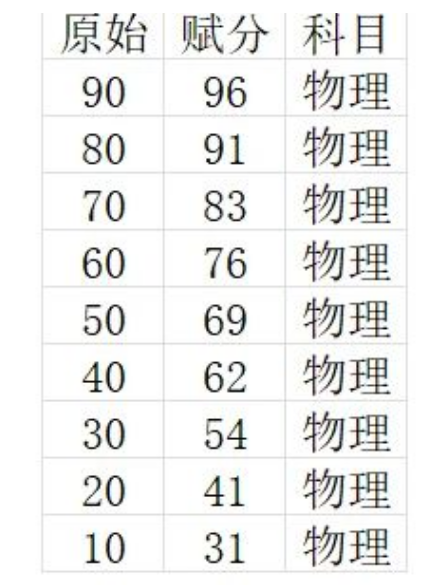 赋分公式:T=(Y2−Y)/(Y2−Y1)×(T2−T1)+T1