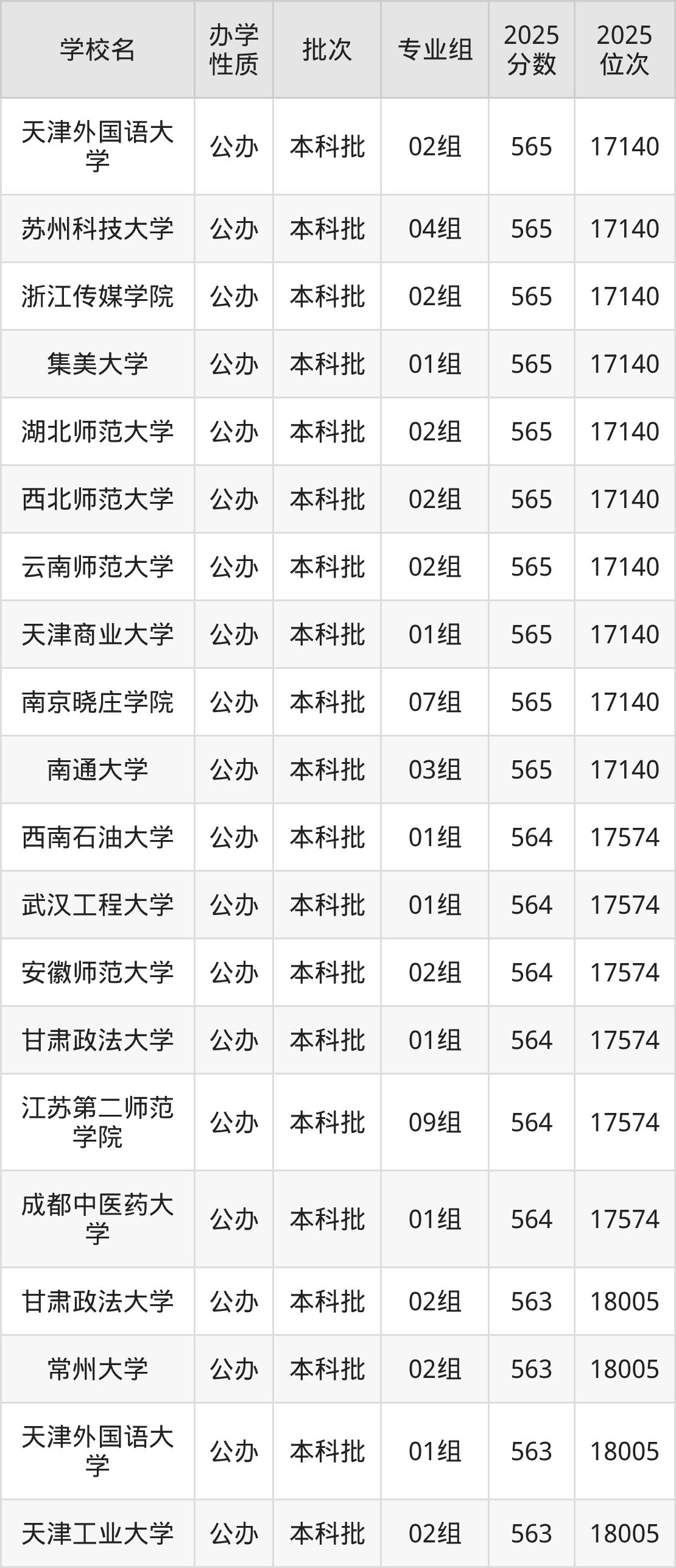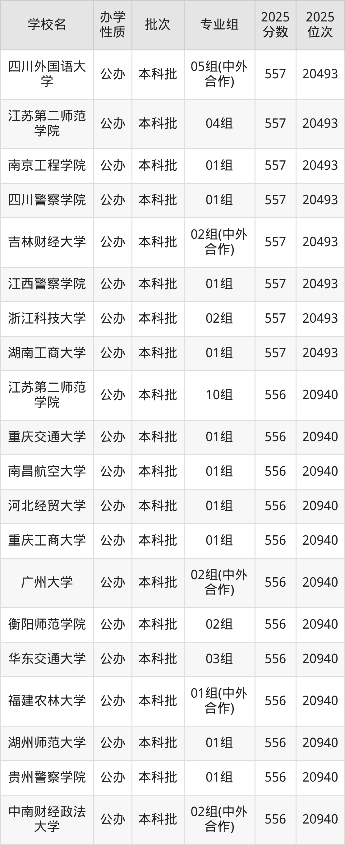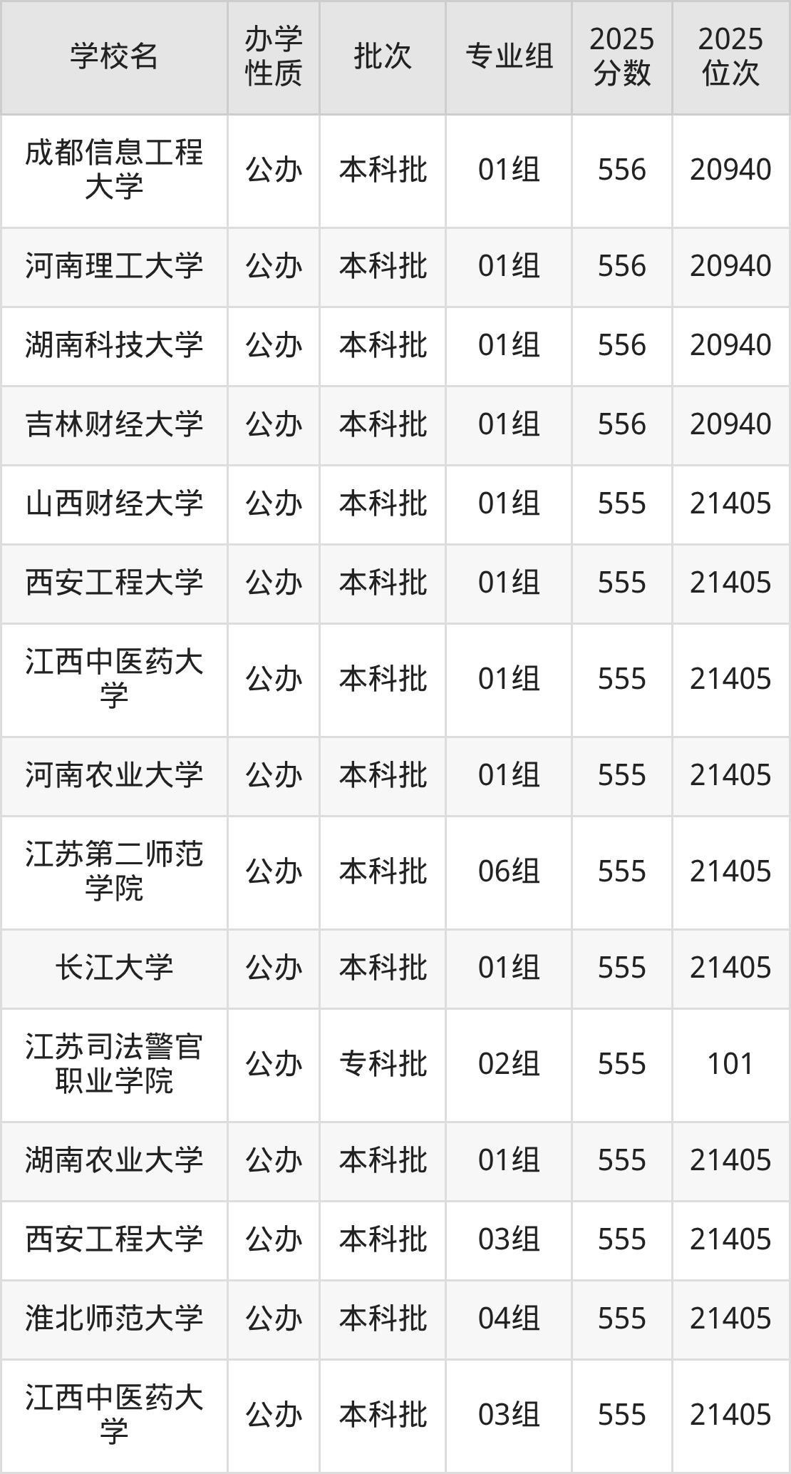 历史组:560分左右能上的最好本科批大学为中南财经政法大学,该校为211,2025年02组最低分是556分。能上的最好专科批大学为江苏司法警官职业学院,该校为公办专科,2025年02组最低分是555分。