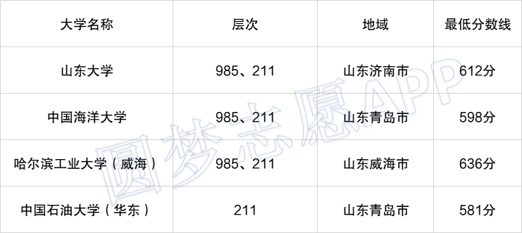 ①山东共有985大学3所,分别是:山东大学、中国海洋大学、哈尔滨工业大学(威海)。