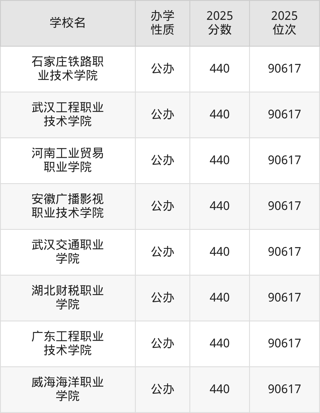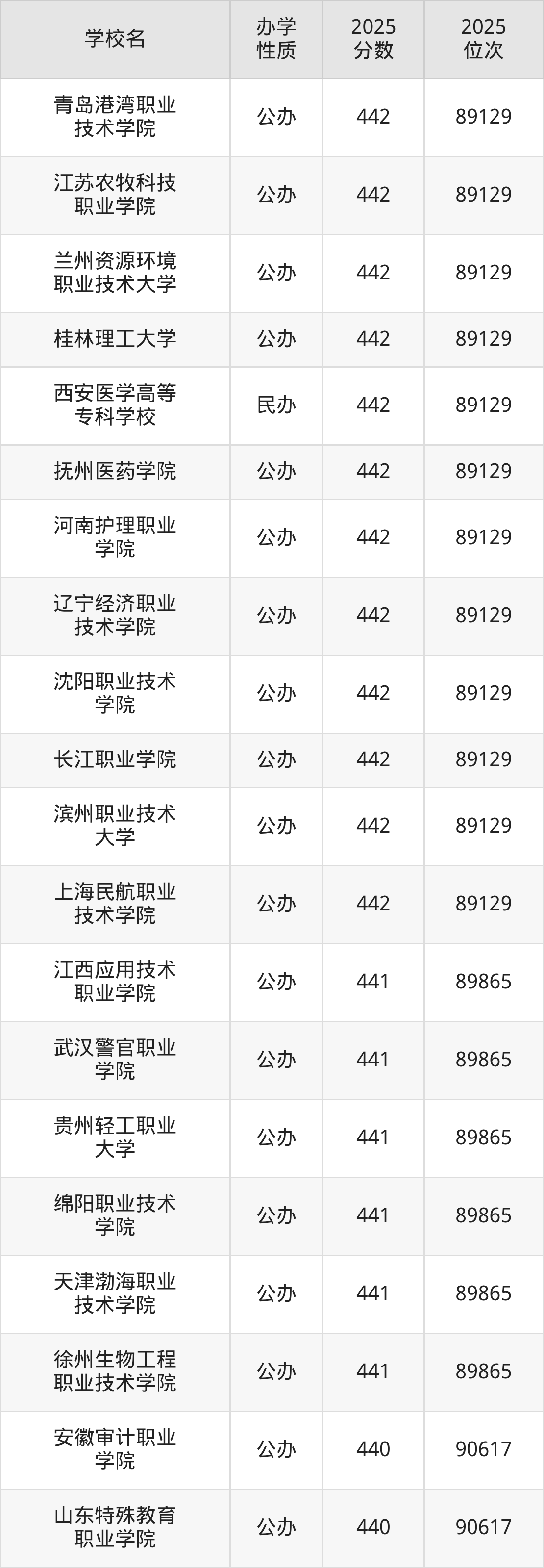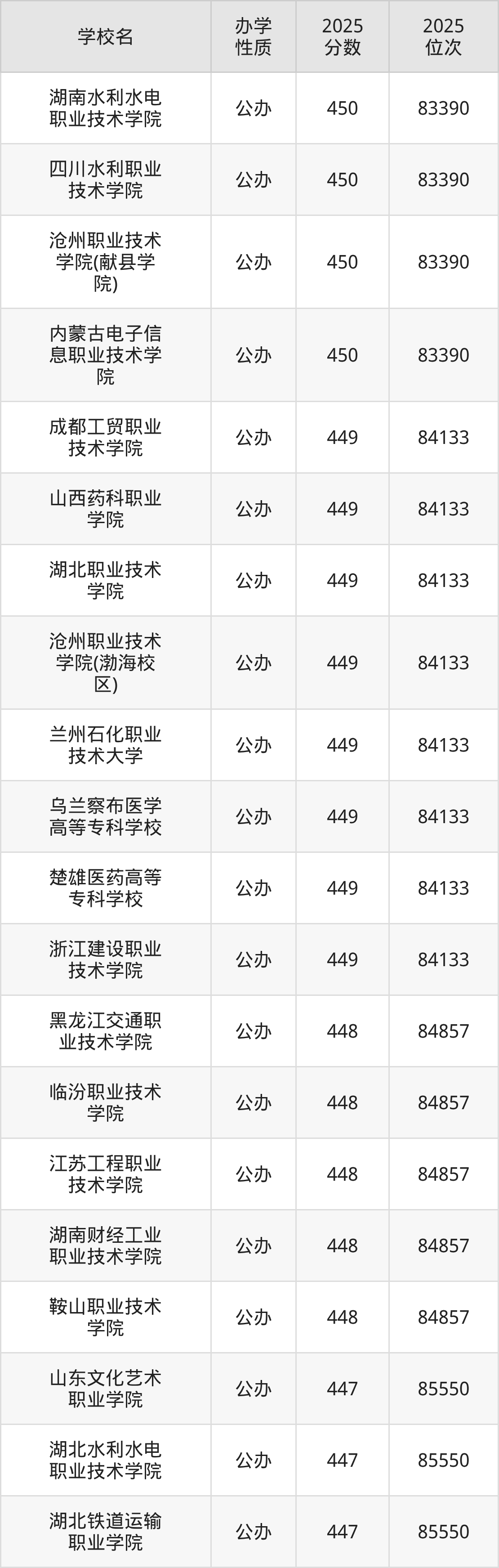 历史组:445分左右能上的最好专科批大学为上海民航职业技术学院,该校为中央部属,2025年最低分是442分。