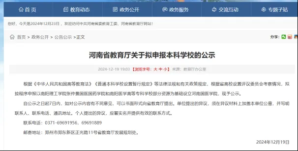 河南国医学院目前尚未公布2025年招生简章,现阶段该校还在筹建之中。但从2024年12月河南省教育厅发布《河南省教育厅关于拟申报本科学校的公示》来看,计划具体内容提到了加快河南国医学院复建步伐,争取2025年获批并招生。