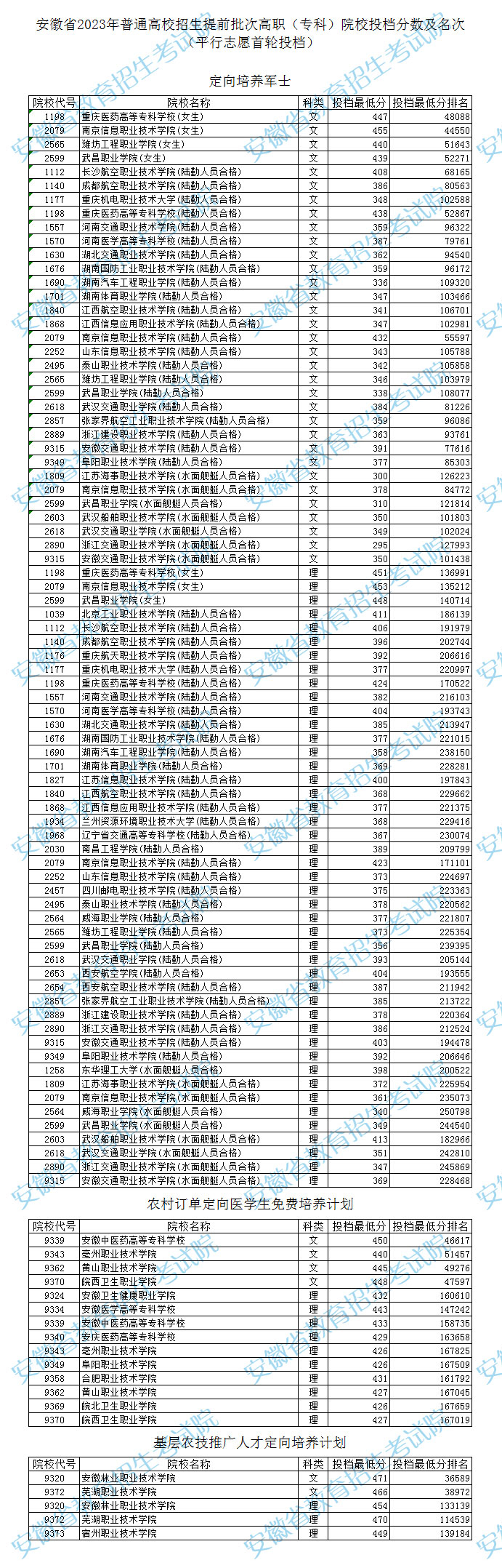 目前已有部分省份公布了2023年定向士官学校录取分数线,包括定向士官学校录取分数线2023安徽、定向士官学校录取分数线2023山东,详情如下。