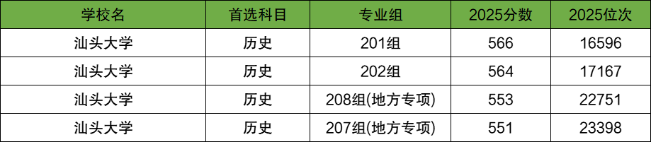 2025年汕头本科各大学专业组录取分数线(历史类):