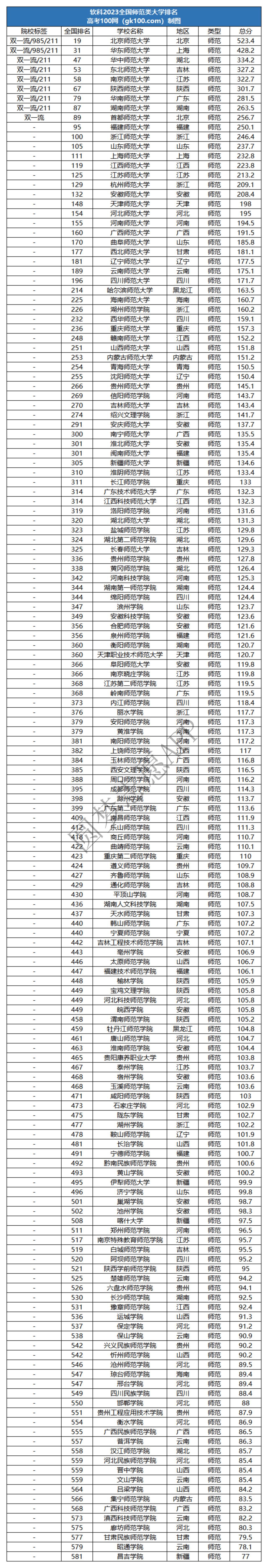 下文为大家带来2023中国全国师范类大学排名一览表供大家参考: