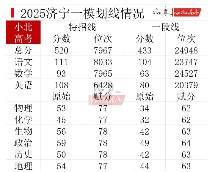 5、2025济宁一模分数线