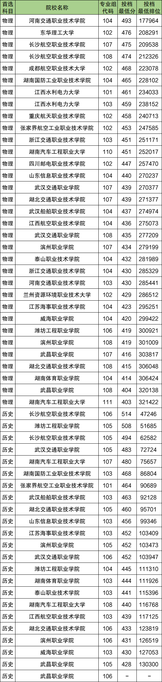 (1)长沙航空职业技术学院106组:514分、47246名;