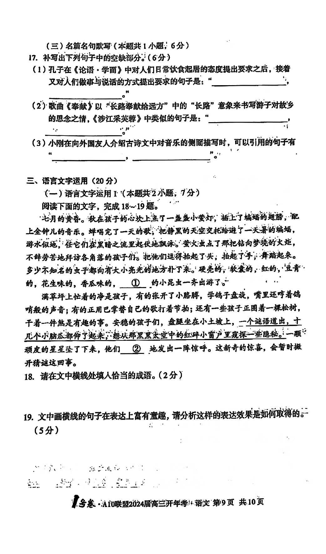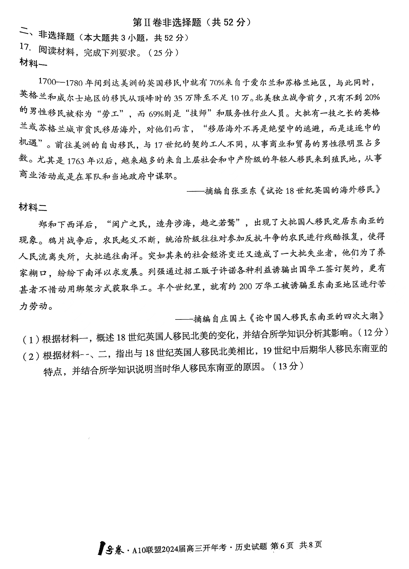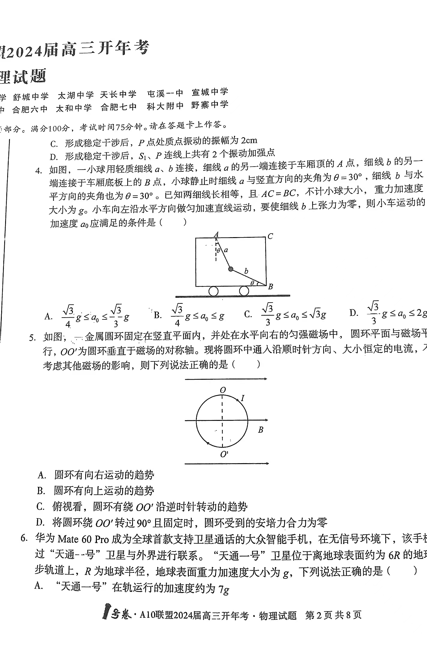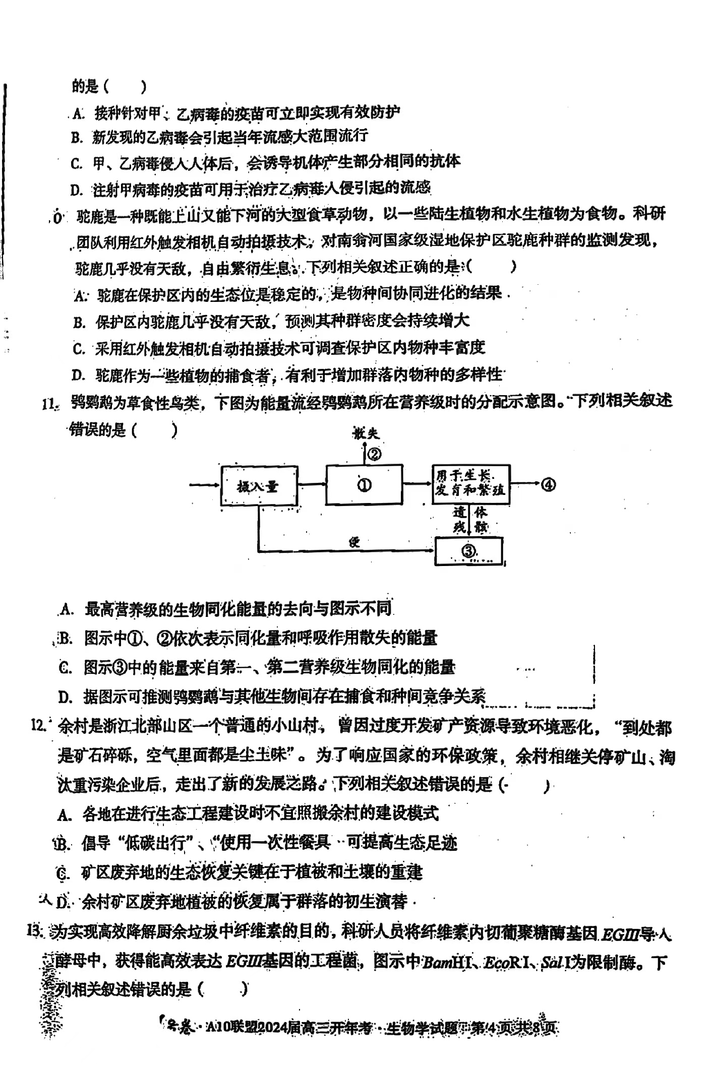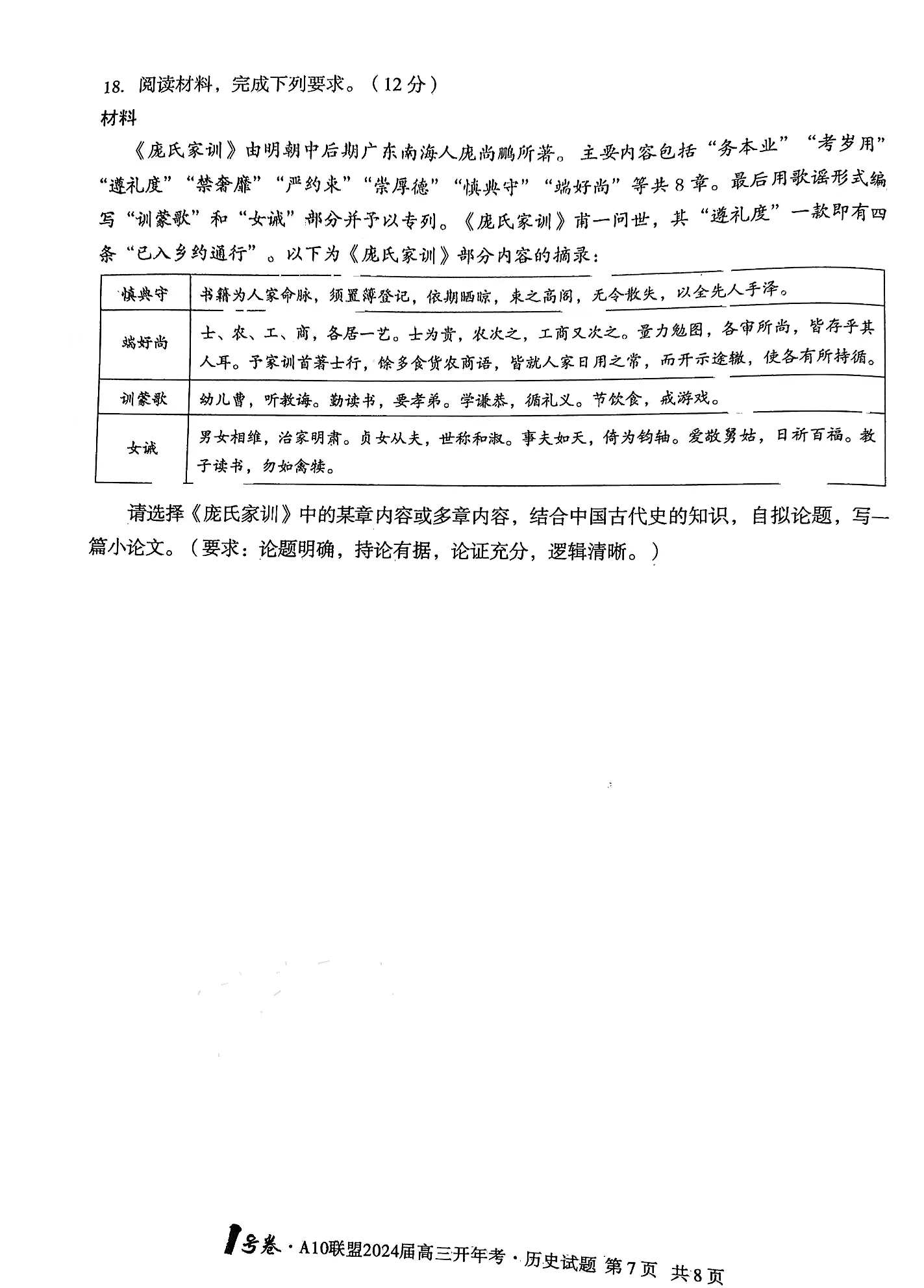 以下为2024届安徽A10联盟高三开年考各科答案及试卷汇总: