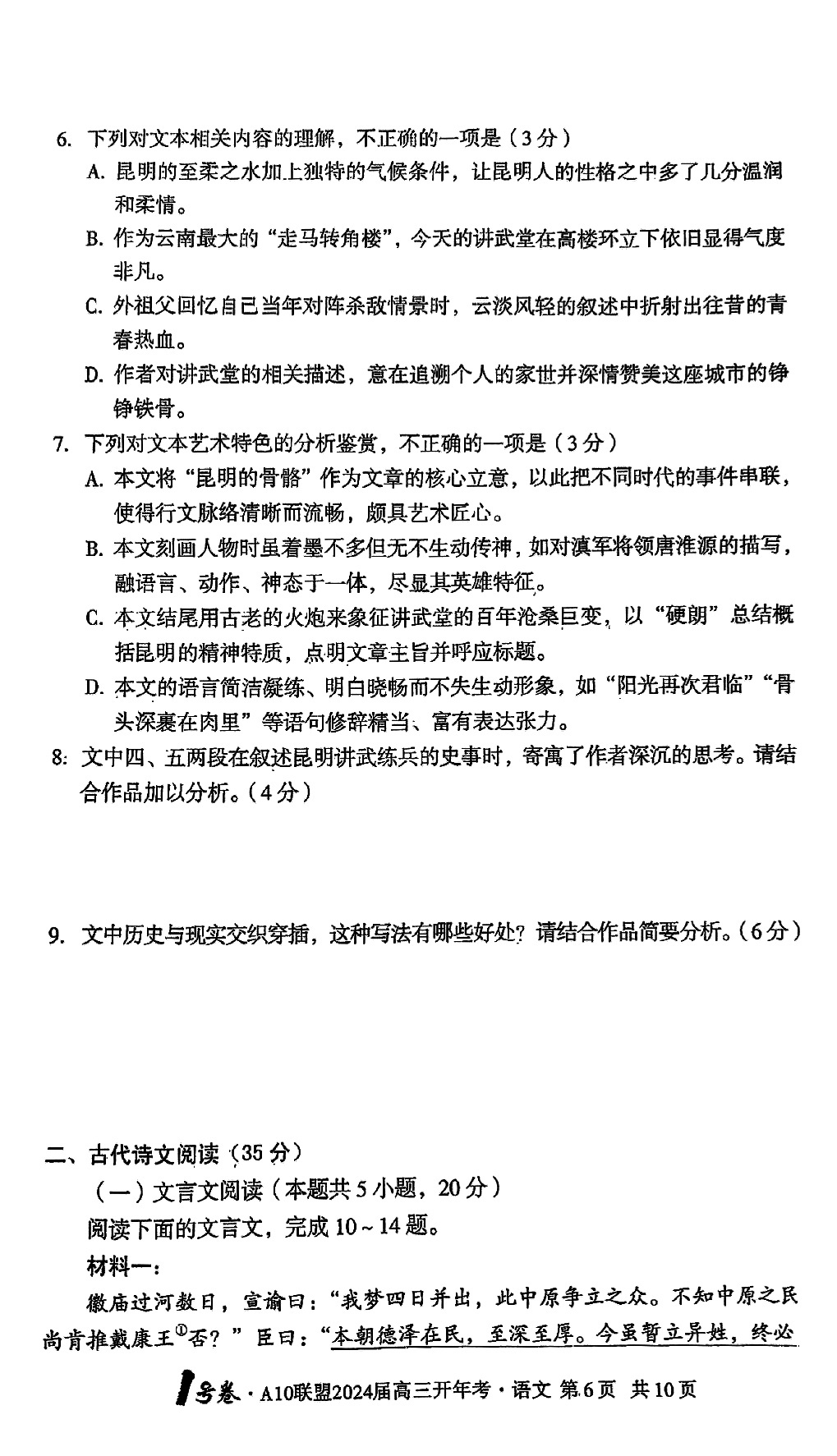 2024届A10联盟高三开年考将于2024年2月20日-21日开始,考试结束后本文将更新A10联盟高三开年考各科试卷及参考答案,包括2024届A10联盟高三开年考语文、数学、英语等科目答案及试卷汇总。
