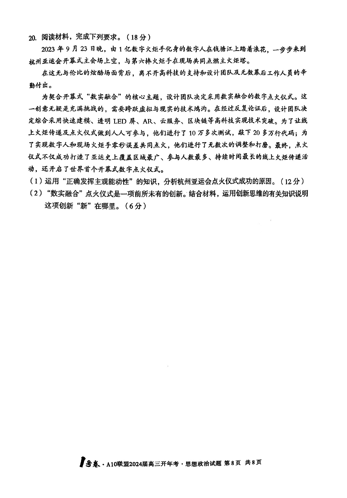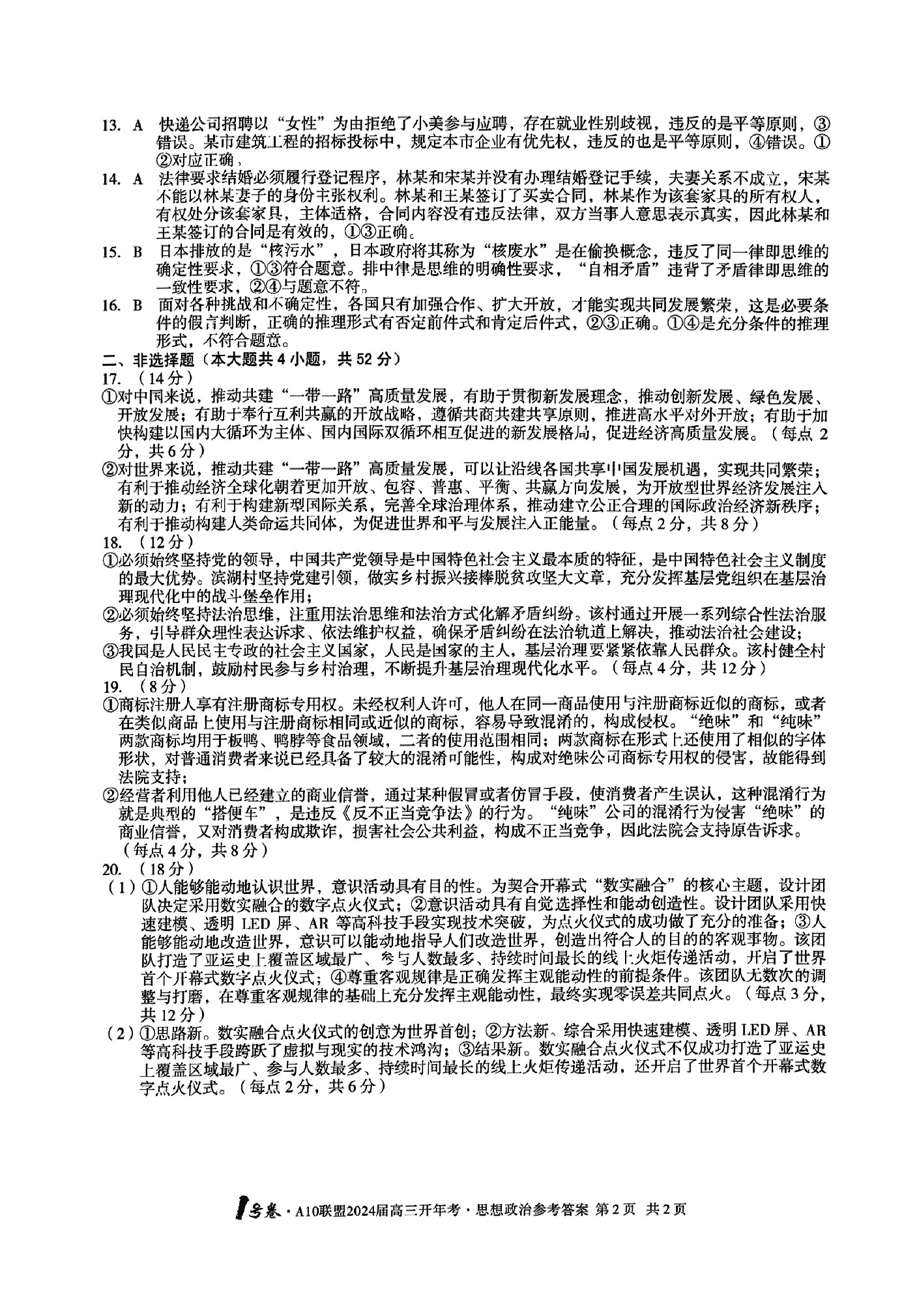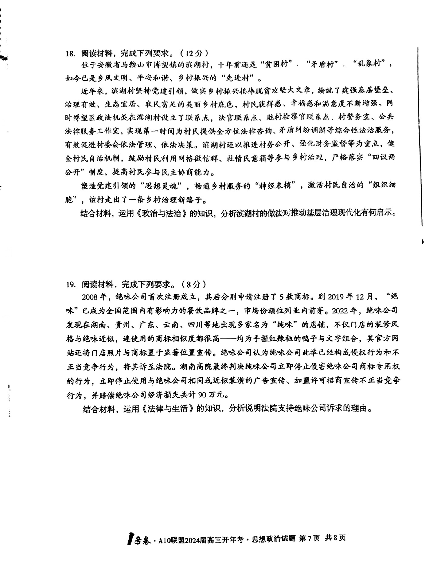新年伊始,全国各地将陆续进行高三大型模拟考试,而2024年A10联盟高三开年考作为大型联考,大家一定要重视起来!安徽A10联盟2024届高三开年考于2月20日-21日举行,该试题质量很好,非常适合考生巩固练习。小编汇总更新了安徽A10联盟2024届高三开学考试题及答案,同步更新中,供大家参考。