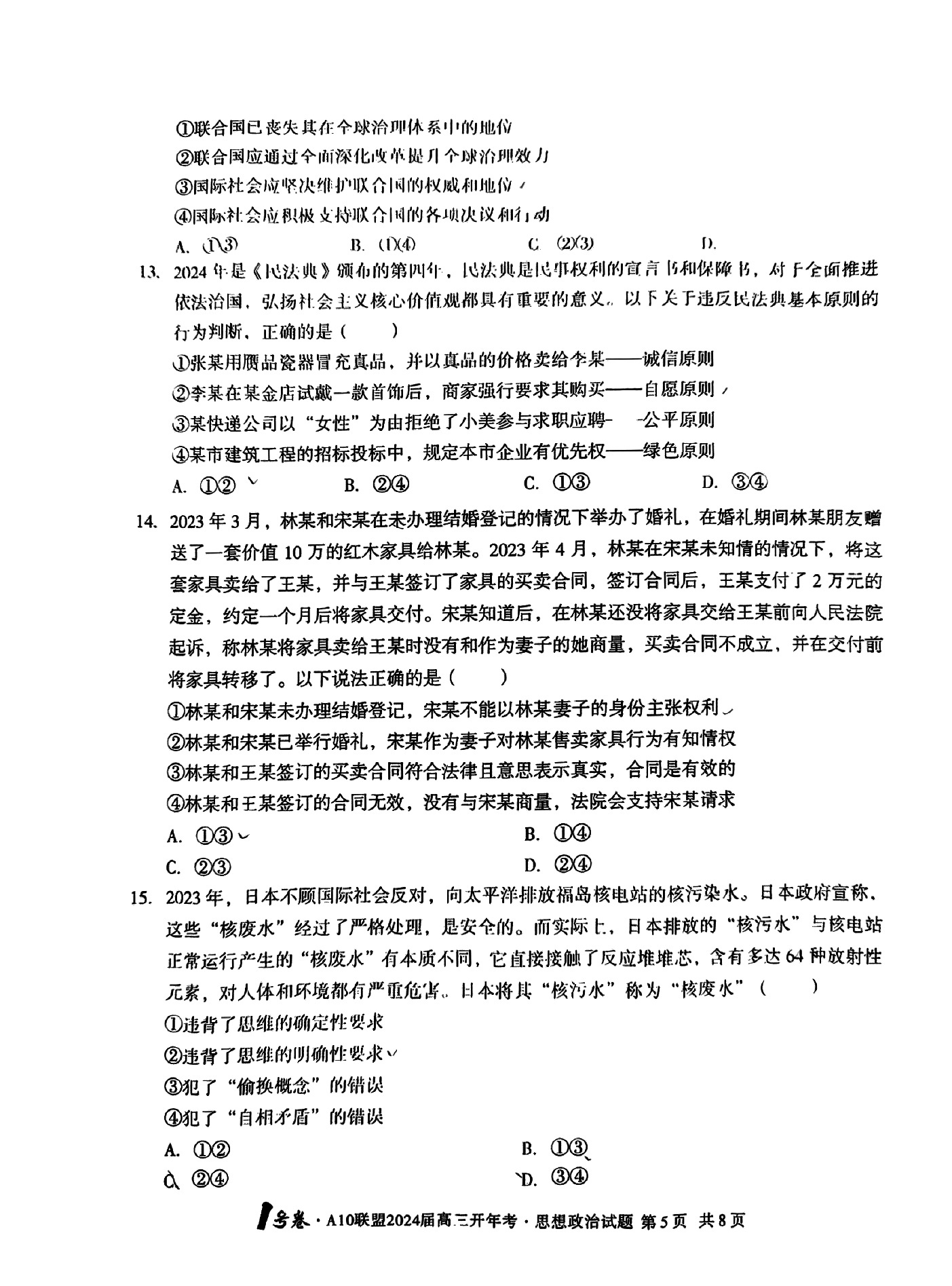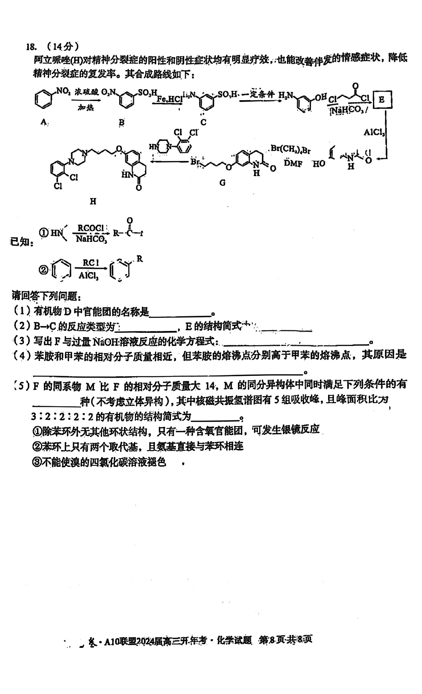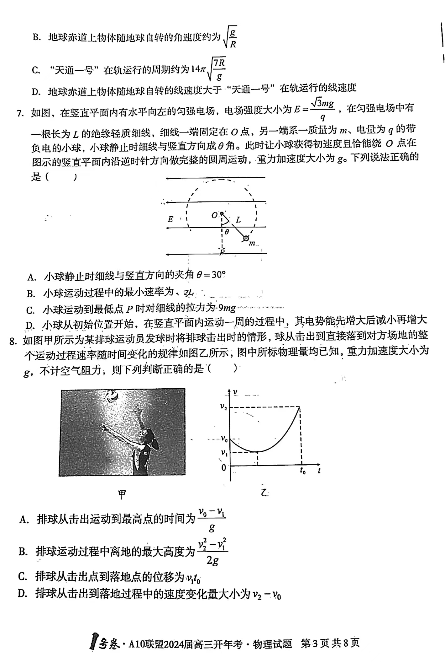 新年伊始,全国各地将陆续进行高三大型模拟考试,而2024年A10联盟高三开年考作为大型联考,大家一定要重视起来!安徽A10联盟2024届高三开年考于2月20日-21日举行,该试题质量很好,非常适合考生巩固练习。小编汇总更新了安徽A10联盟2024届高三开学考试题及答案,同步更新中,供大家参考。