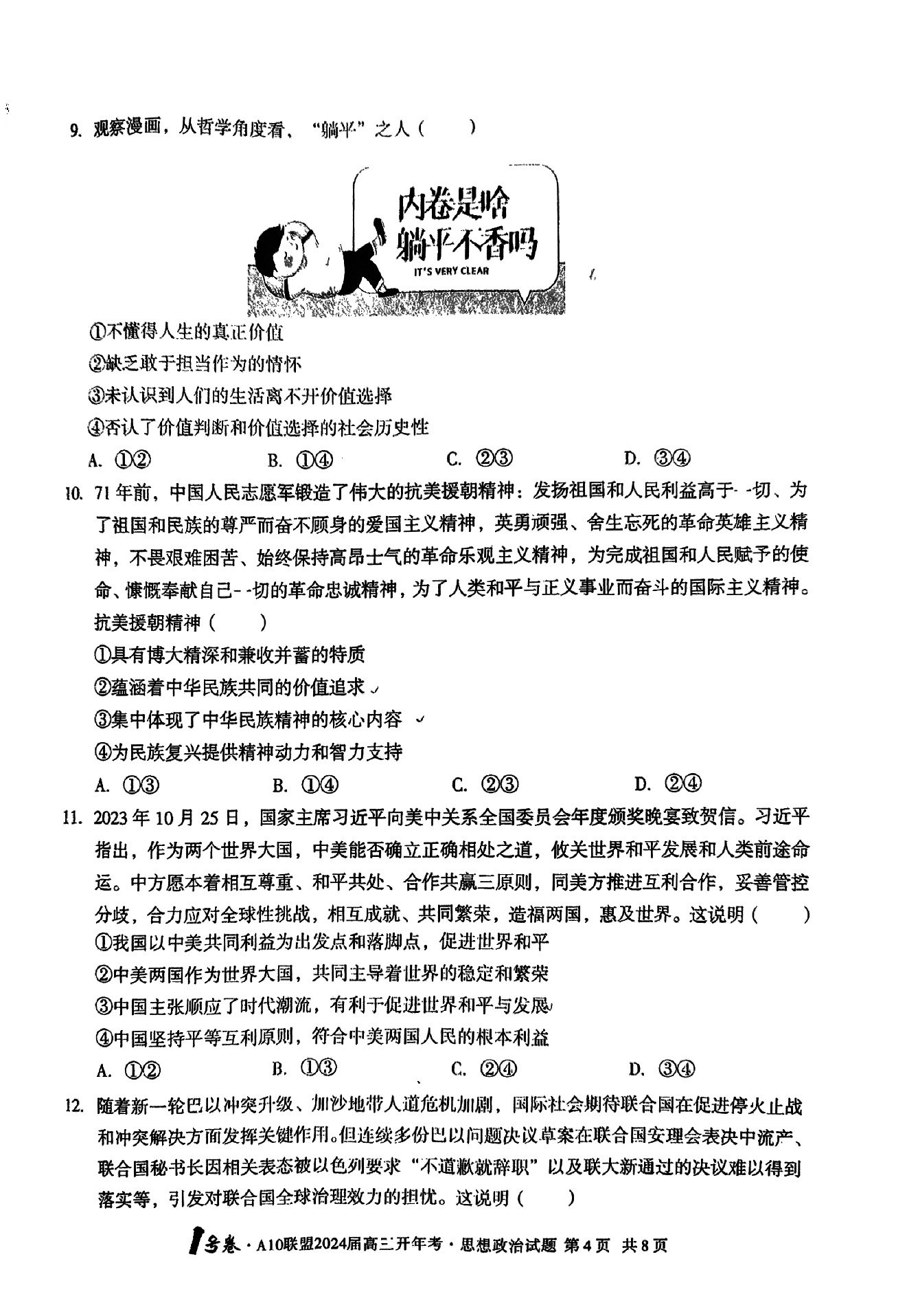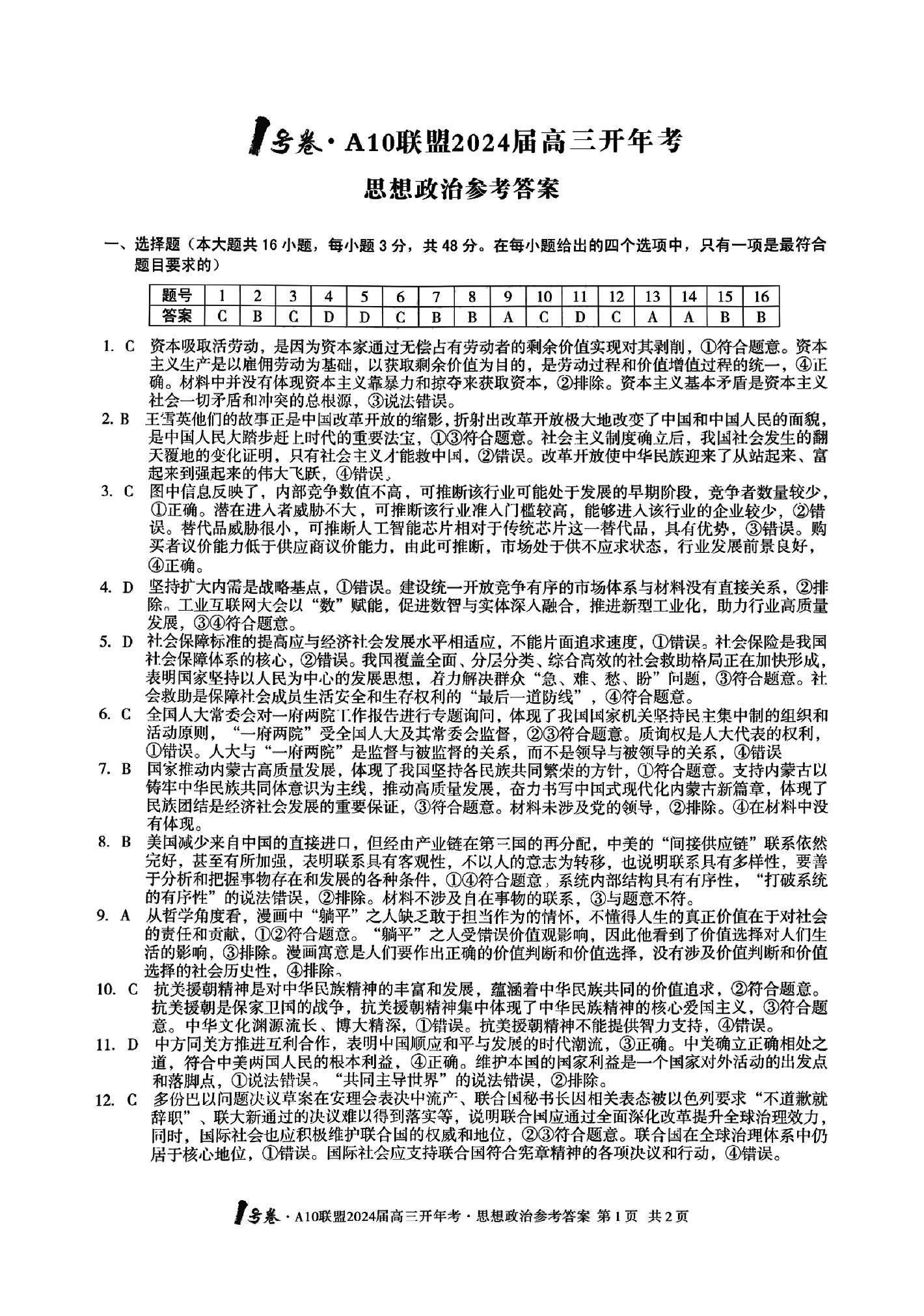 联考题是考生重要的复习参考资料,为帮助大家练习,核对参考答案做好试卷分析,本文整理了2024届安徽A10联盟高三开年考各科试卷及答案汇总,以下是详细内容。
