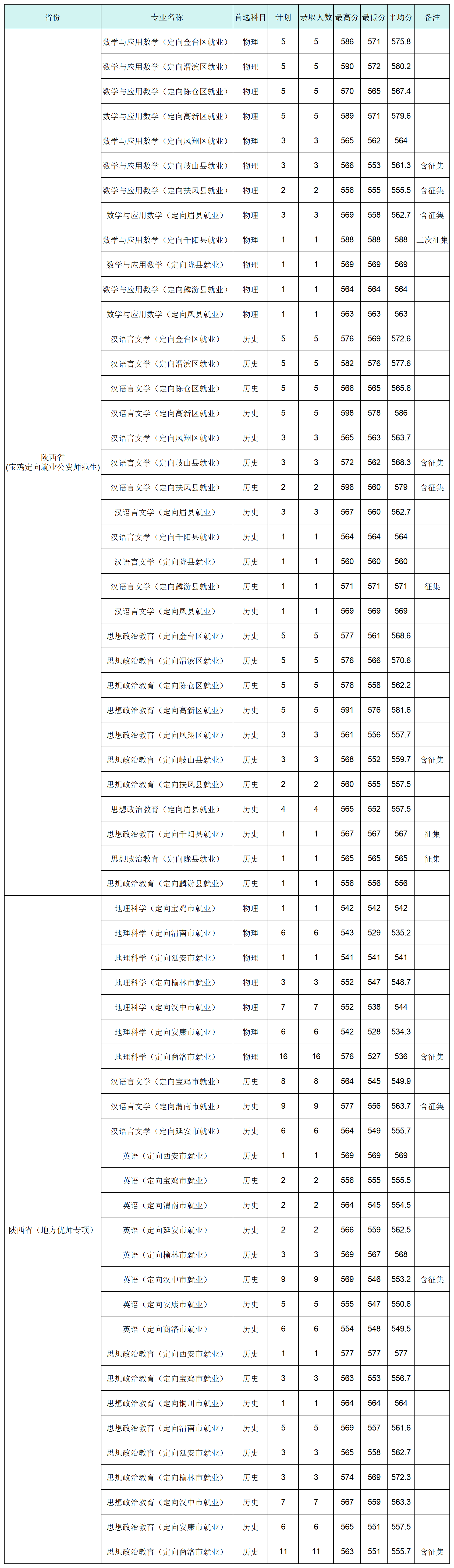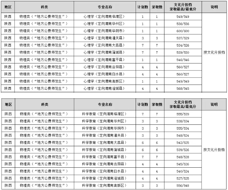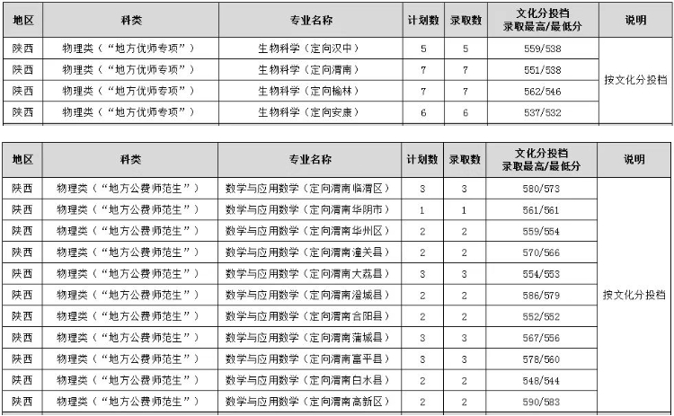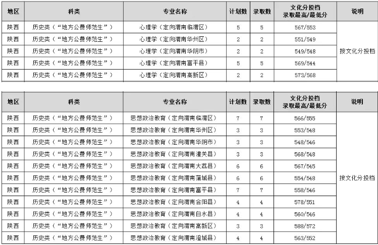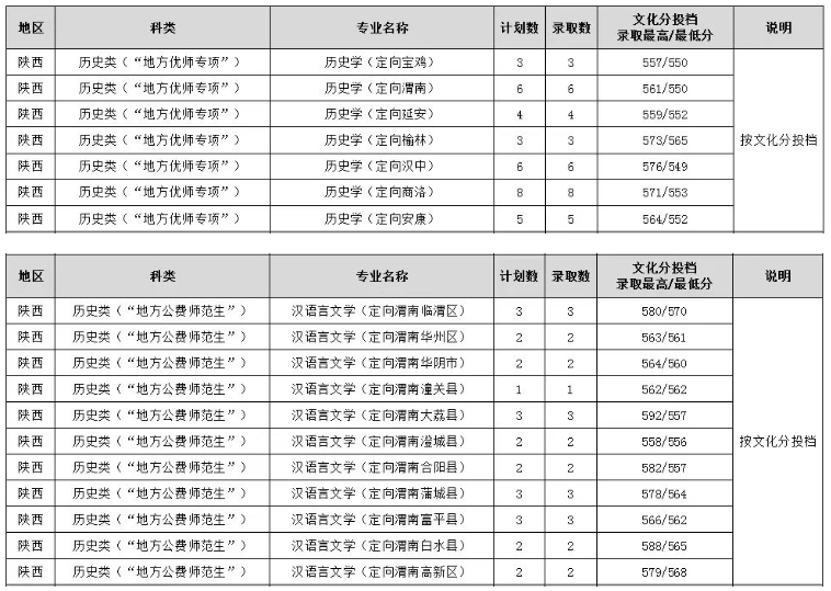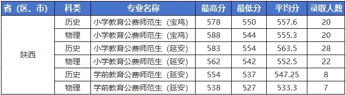 不同学校、不同专业、以及不同的定向区域录取分数线都不一样,下面是2025年陕西地方公费师范生院校及分数线详情。