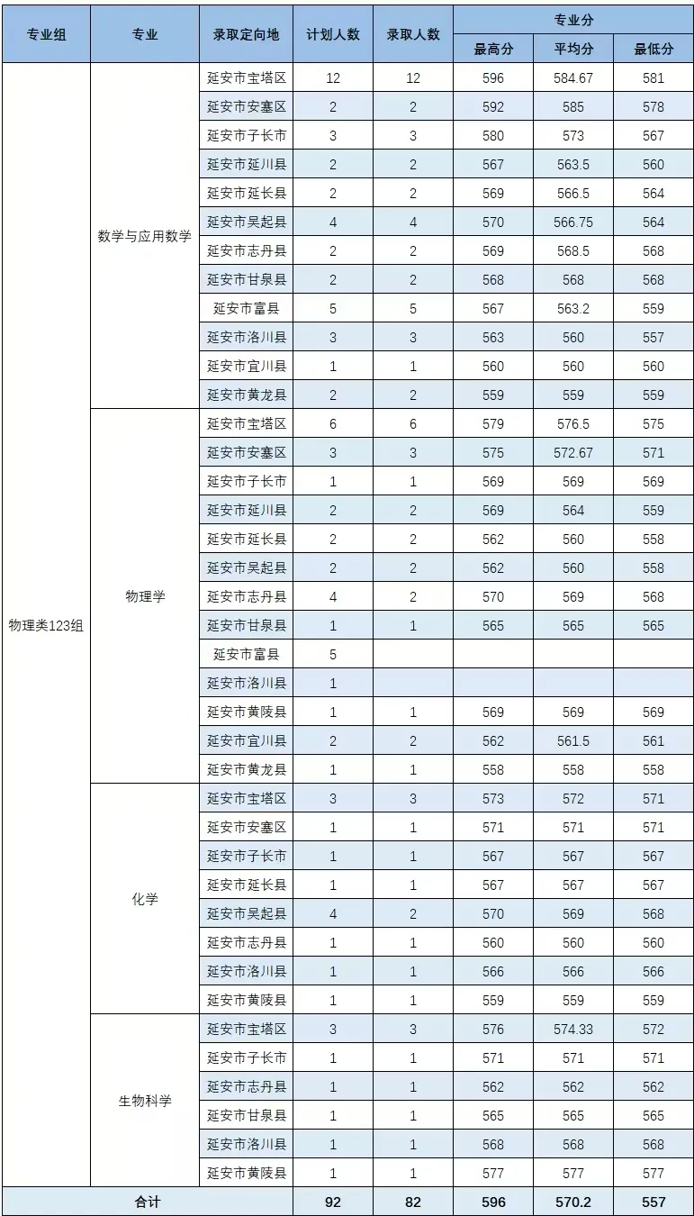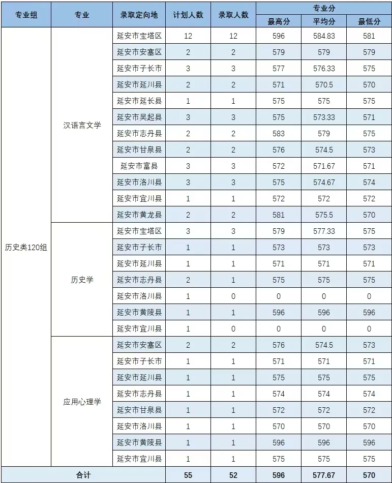 7、延安大学2025年最低分:物理类是551分、历史类是569分。