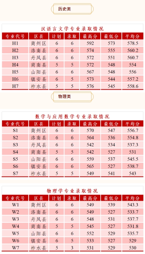 3、商洛学院2025年最低分:物理类是544分、历史类是527分。