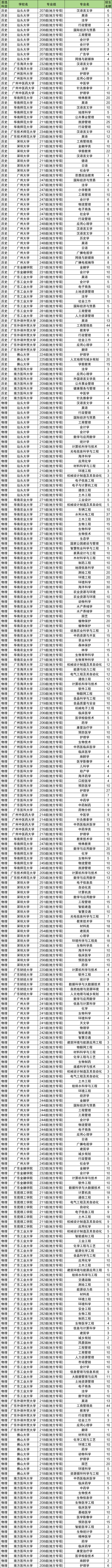 二、广东地方专项计划大学及专业名单