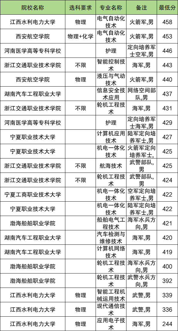 2025年山东定向士官学校录取分数线目前尚未完全公布,下面为已经公布分数线的学校最低分汇总,招生对象全部为男生。