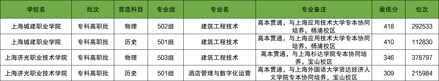 2025年广东3+2专本贯通招生院校为省外高校,包括上海济光职业技术学院、上海城建职业学院等。