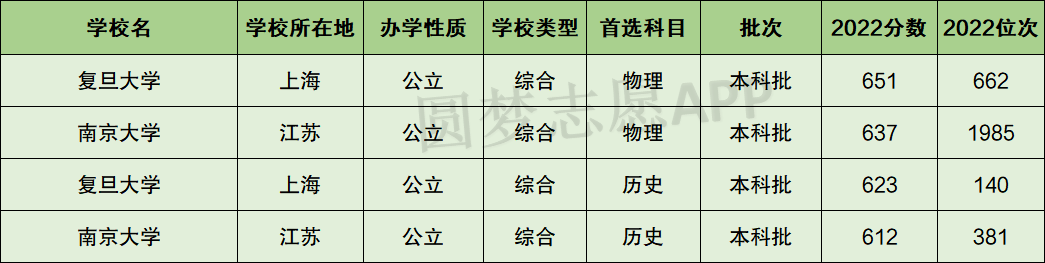 综上复旦大学和南京大学,只比较所在地区的分数线,整体上看复旦大学在分数线上高一些。