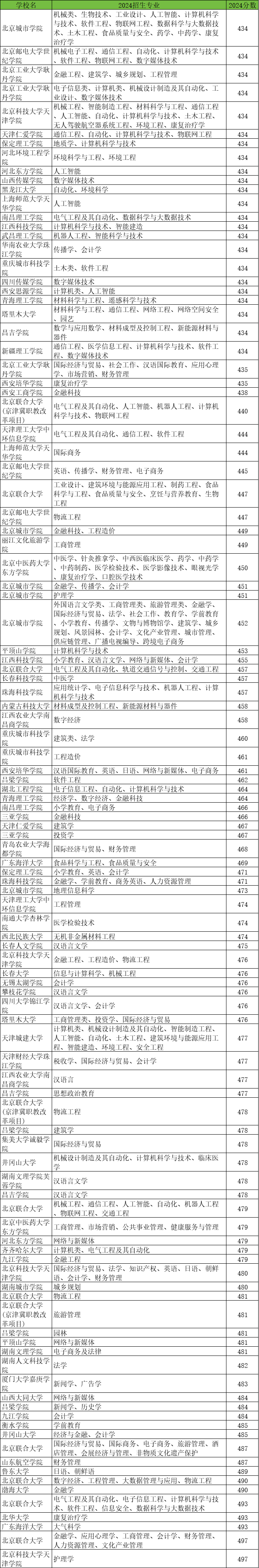 2024年综合类大学录取分数范围在434分~700分之间,其中最好考、收分最低的院校是北京城市学院(机械类、生物技术、工业设计、人工智能等)、北京邮电大学世纪学院(机械电子工程、通信工程、自动化)、北京工业大学耿丹学院(金融工程、建筑学、城乡规划、工程管理)等二十余所,学校最低分为434分。