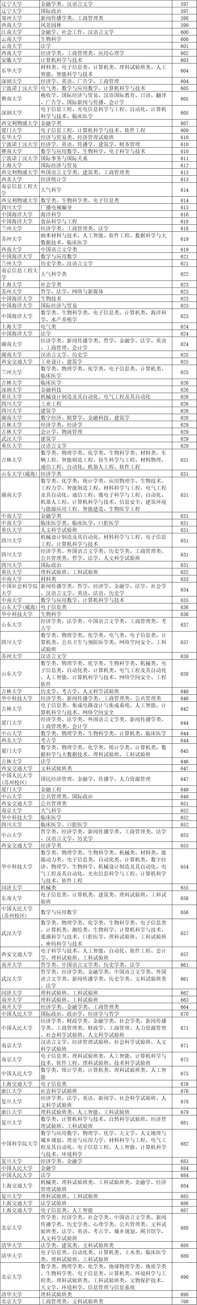 全国综合类大学排名均在前六百强以内(五百强以下未具体排名),清华大学的全国排名最为靠前,为第1名。下面是国内排名最高的10所综合类大学具体情况:
