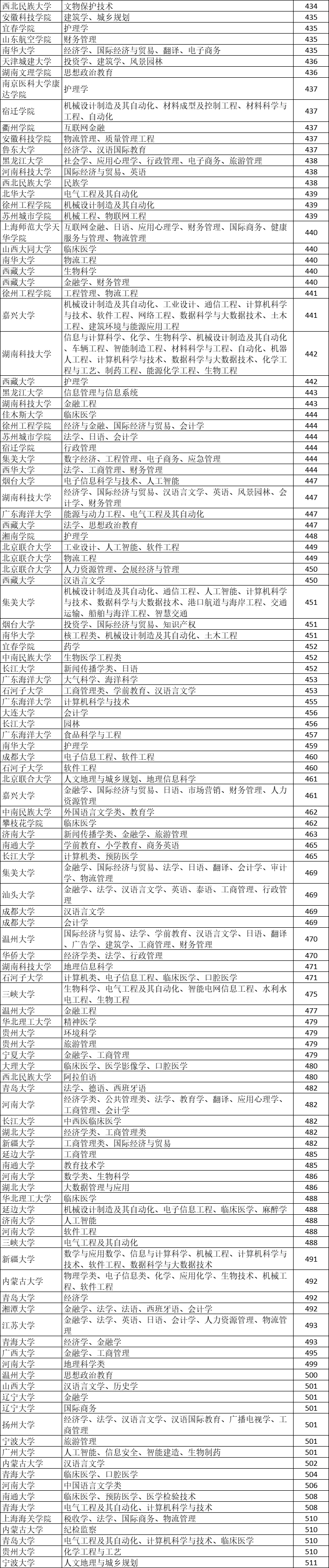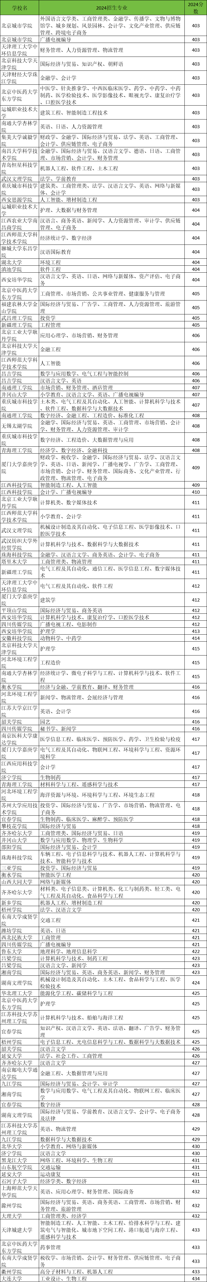 2024年综合类大学录取分数范围在403分~620分之间,其中考生最好考、收分最低的院校是北京城市学院(外国语言文学类、工商管理类、金融学等)、北京城市学院(广播电视编导)、天津理工大学中环信息学院(财务管理、人力资源管理、物流管理)等十余所,学校最低分为403分。