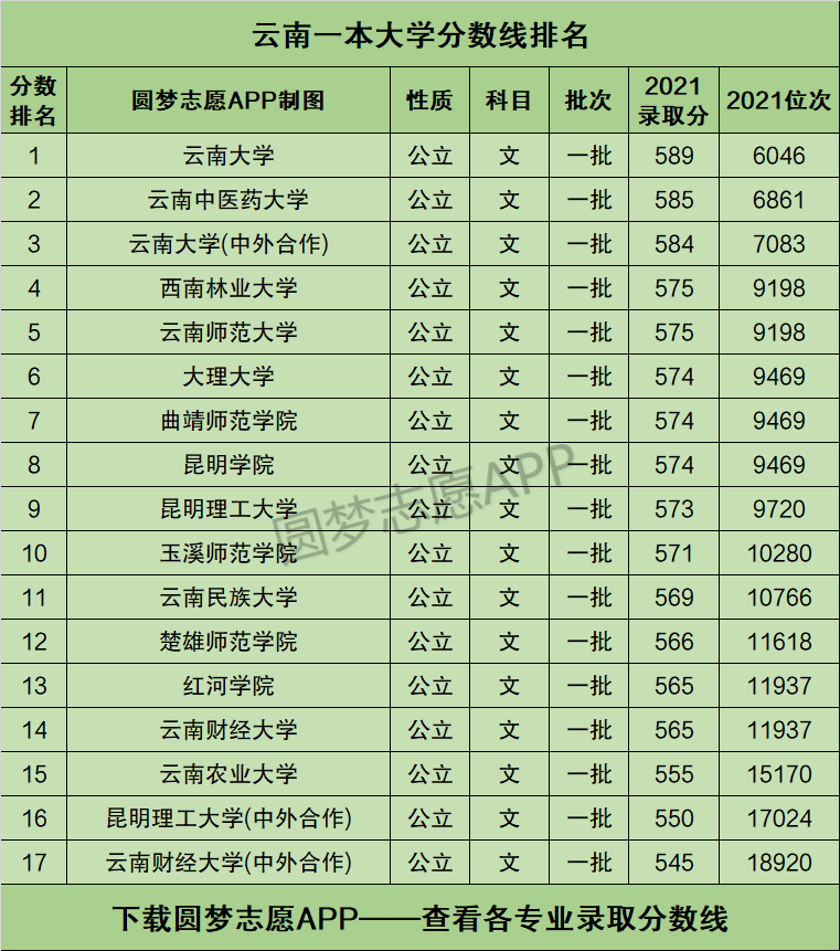 云南一本大学有哪些学校?它们2021年在云南高考文理科的最低录取分数线是多少?了解这两个问题的答案后,云南高三考生在择校时将会更加游刃有余。