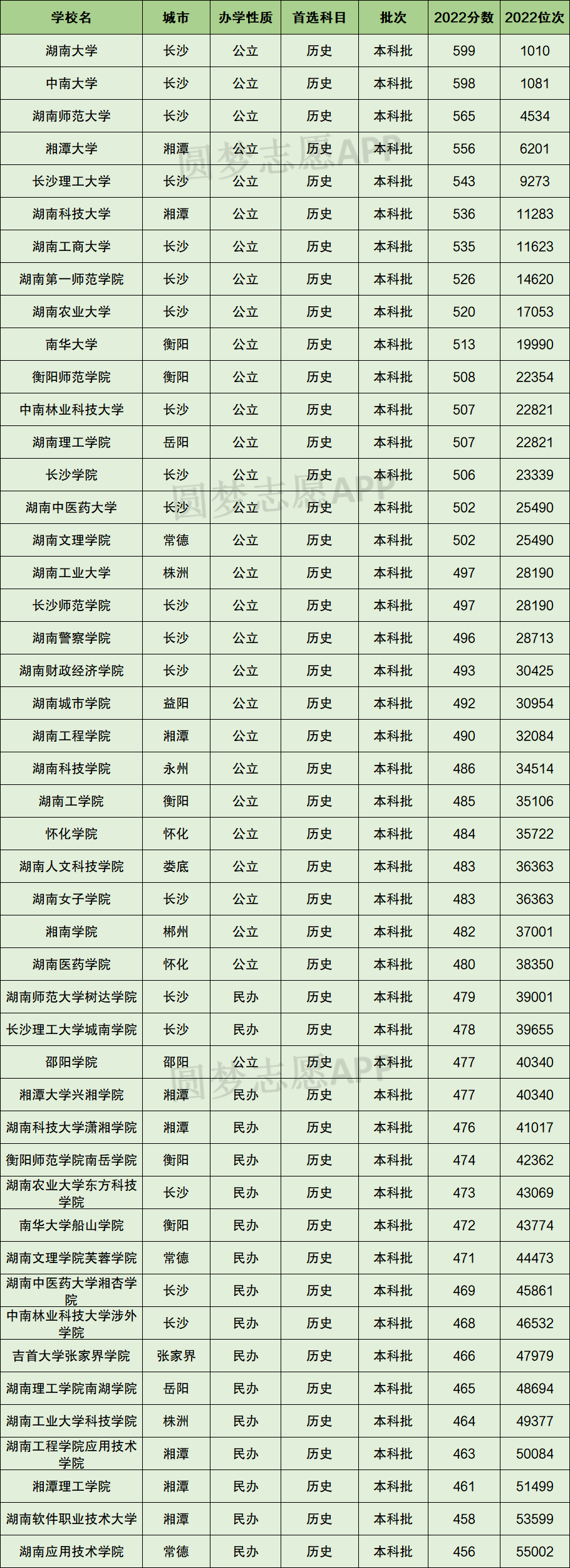 二、湖南地区的大学排名一览表及分数2022年(首选历史科目)
