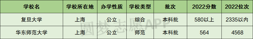 综上复旦大学和华东师范大学,只比较所在地区的分数线,整体上看复旦大学在分数线上高一些。