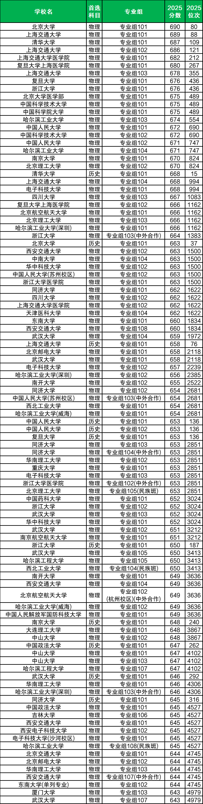 下面附上全国大学2025年在四川录取分数线Top100一览表,分数表较长,需滑动查阅: