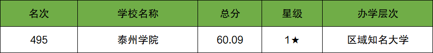 第1名:泰州学院(全国第495名)