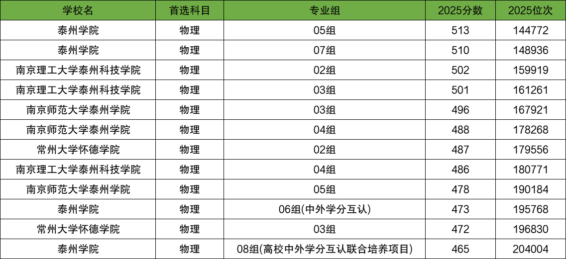 2025年泰州本科各大学专业组录取分数线(物理类):