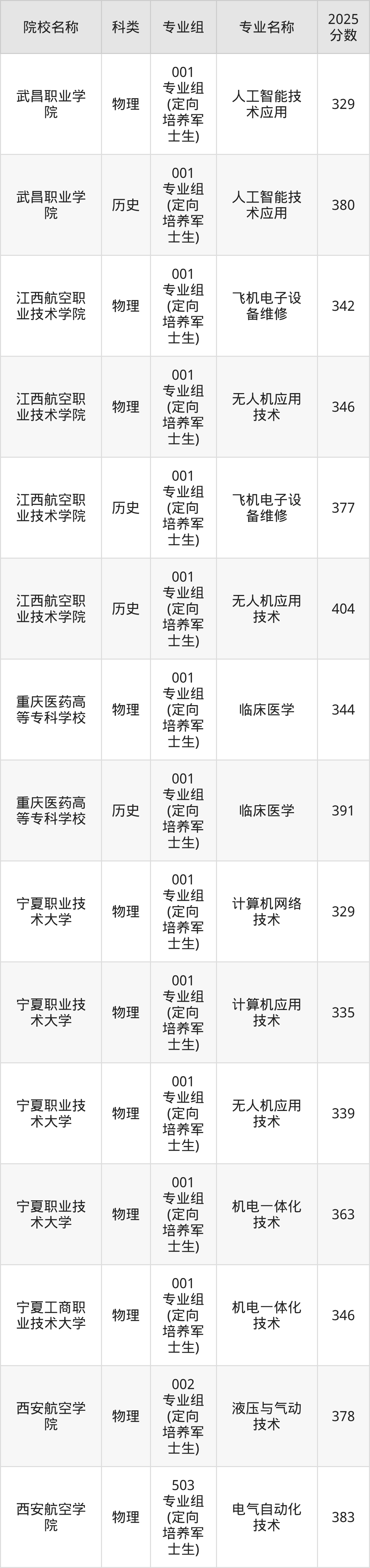 更多院校分数可在2025年宁夏定向士官录取分数线一览表中查询: