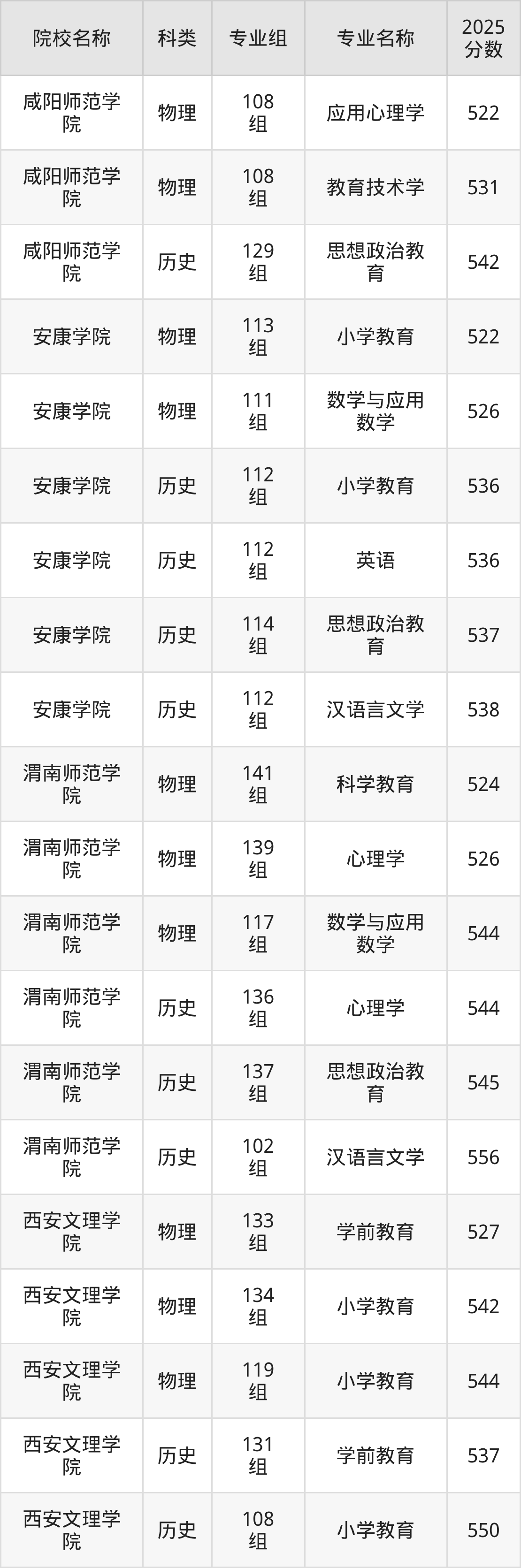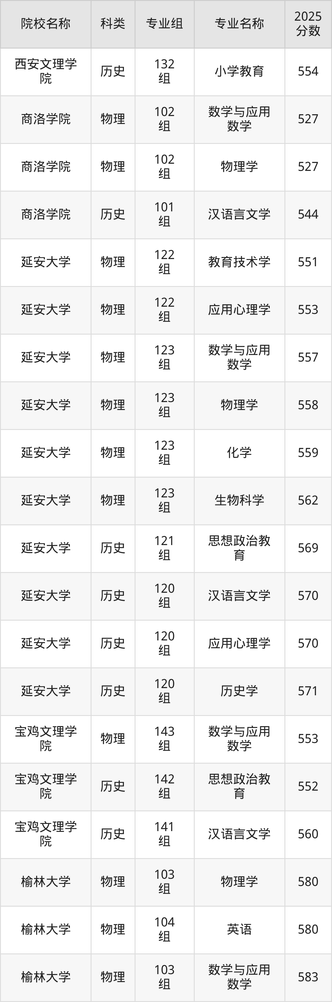 更多院校分数可在2025年陕西地方公费师范生录取分数线一览表中查询: