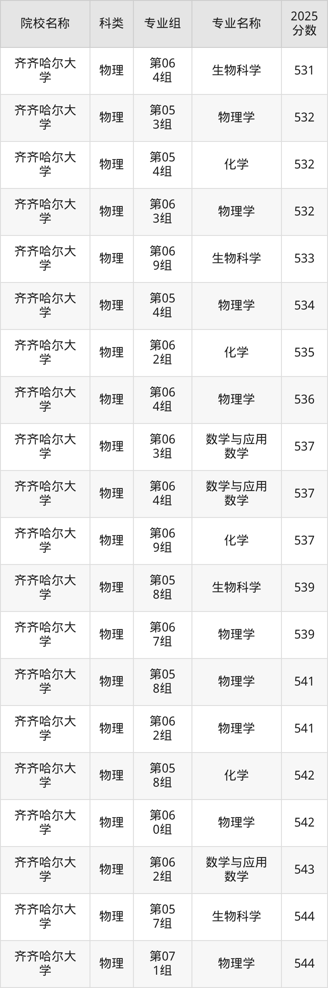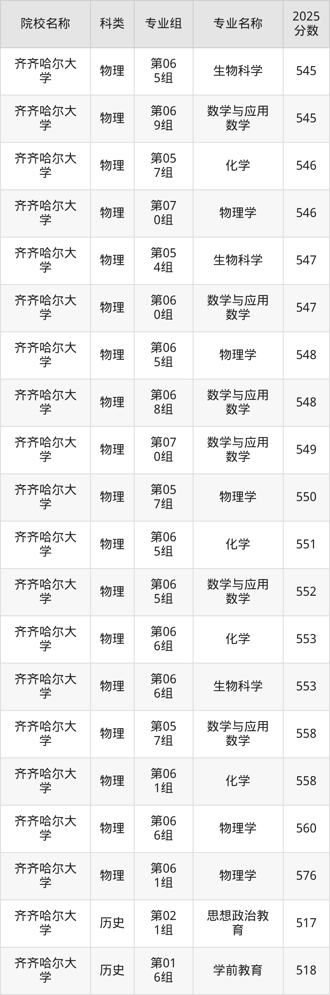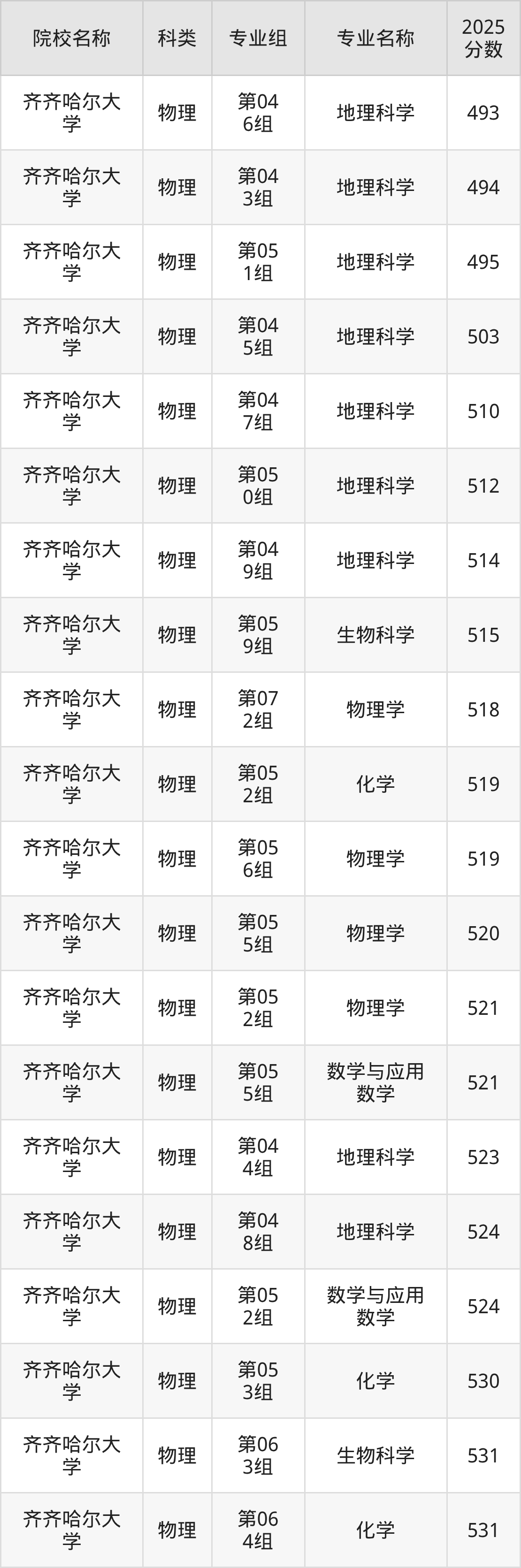1、齐齐哈尔大学:最低493分