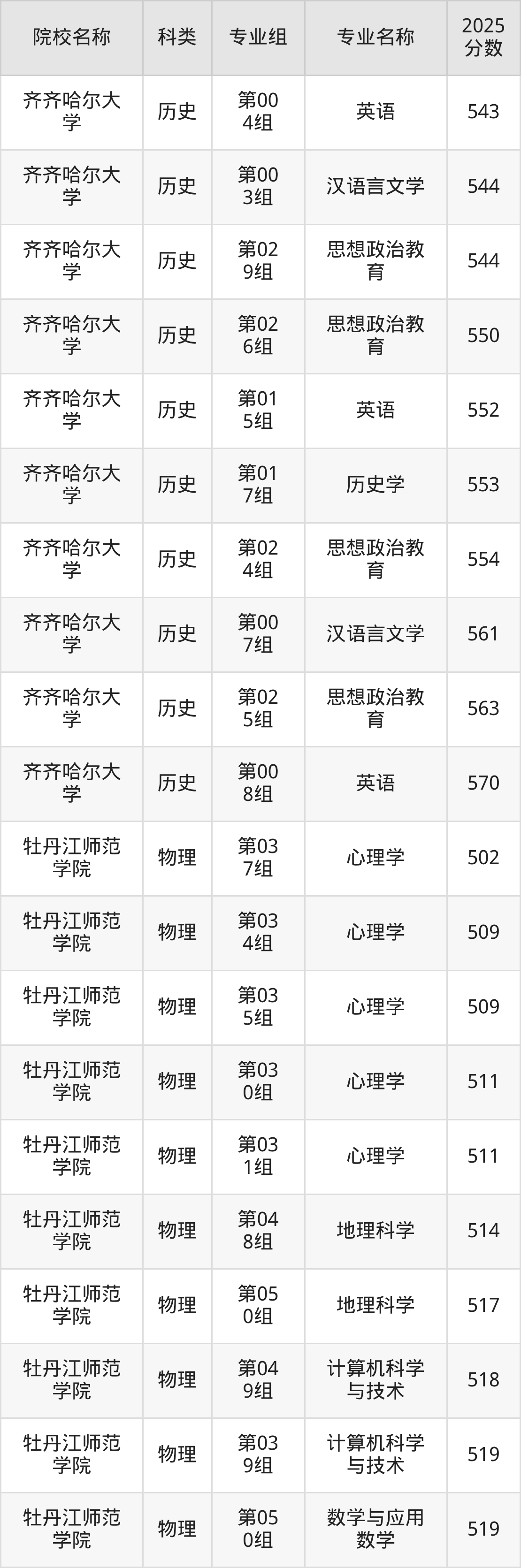 更多院校分数可在2025年黑龙江地方公费师范生录取分数线一览表中查询: